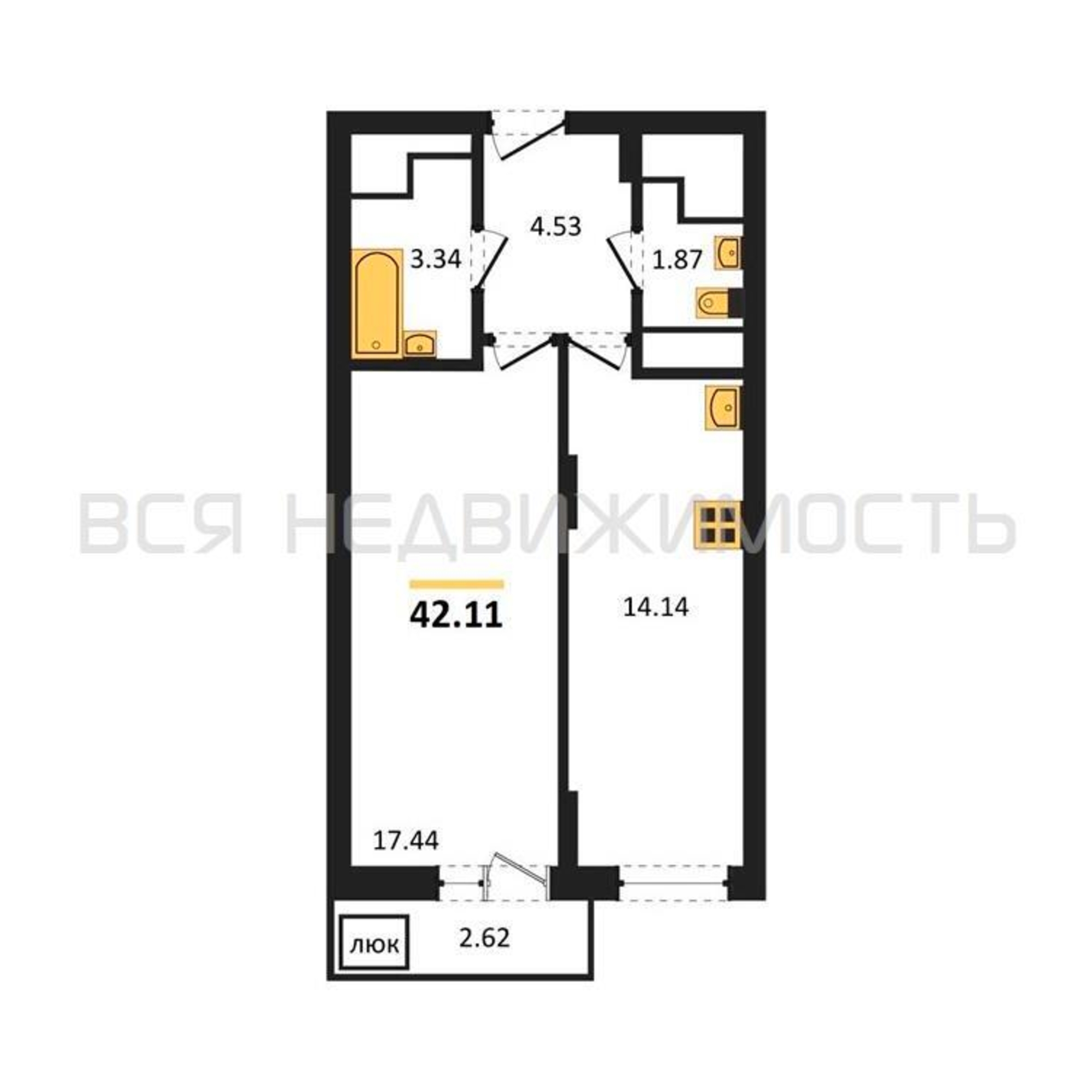 1-комнатная квартира, 42.11 м² 17/27 этаж ID объекта 100056458