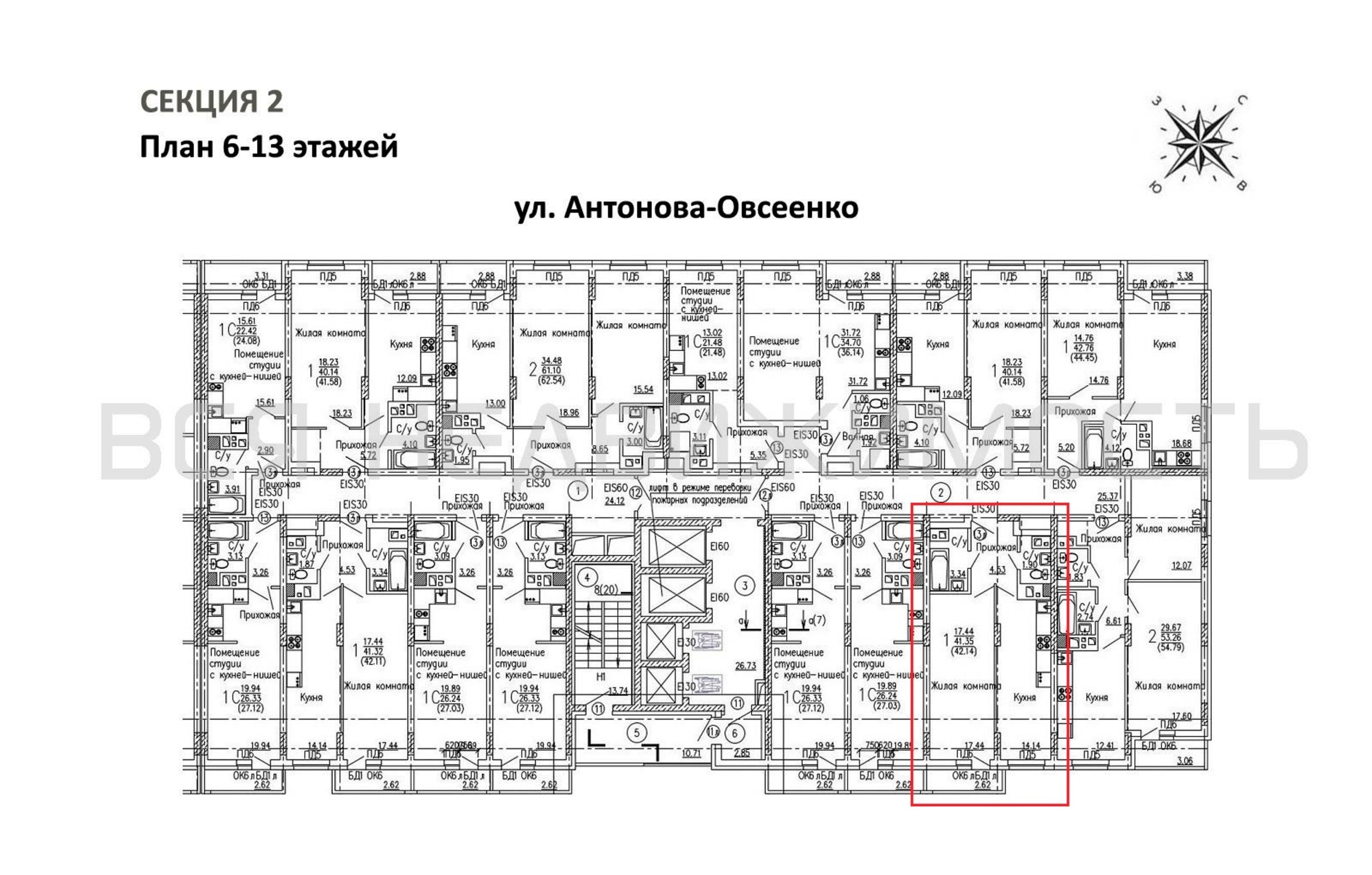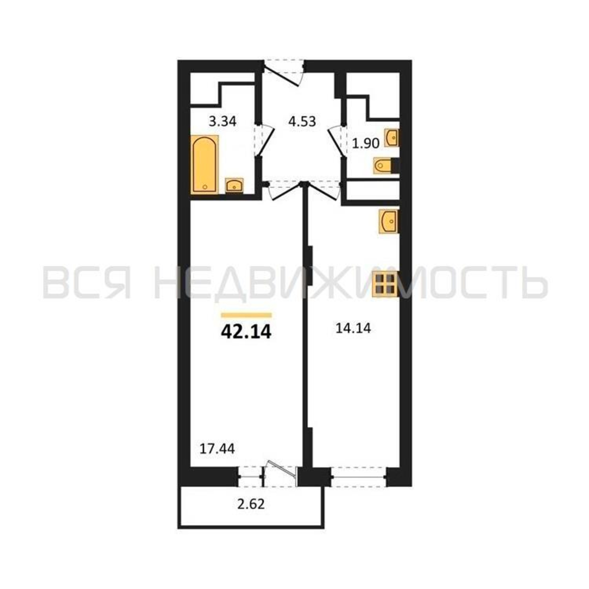 1-комнатная квартира, 42.14 м² 7/27 этаж ID объекта 100056522