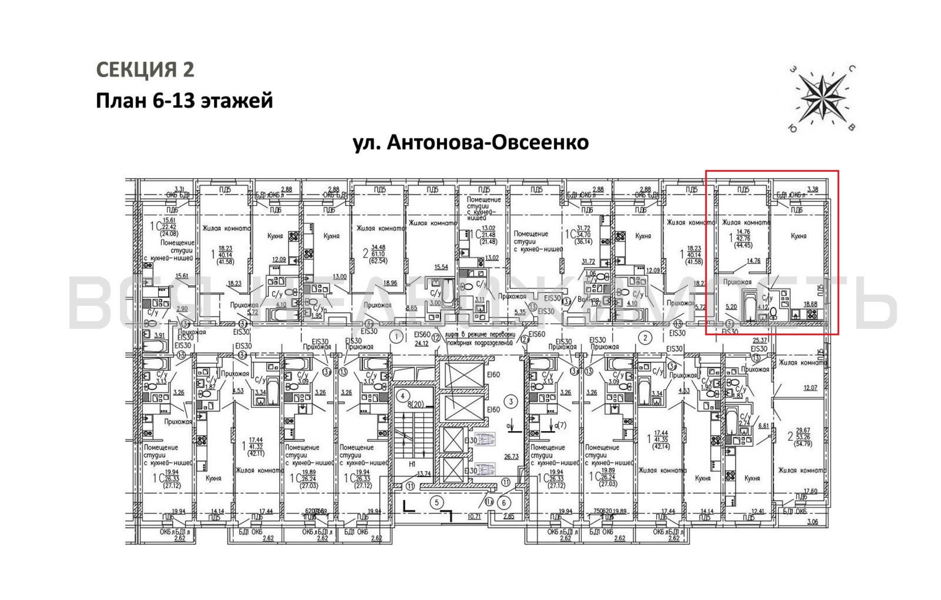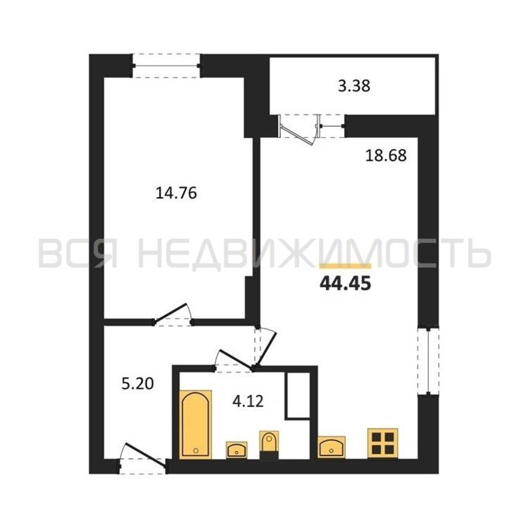 1-комнатная квартира, 44.45 м² 8/27 этаж ID объекта 100056534