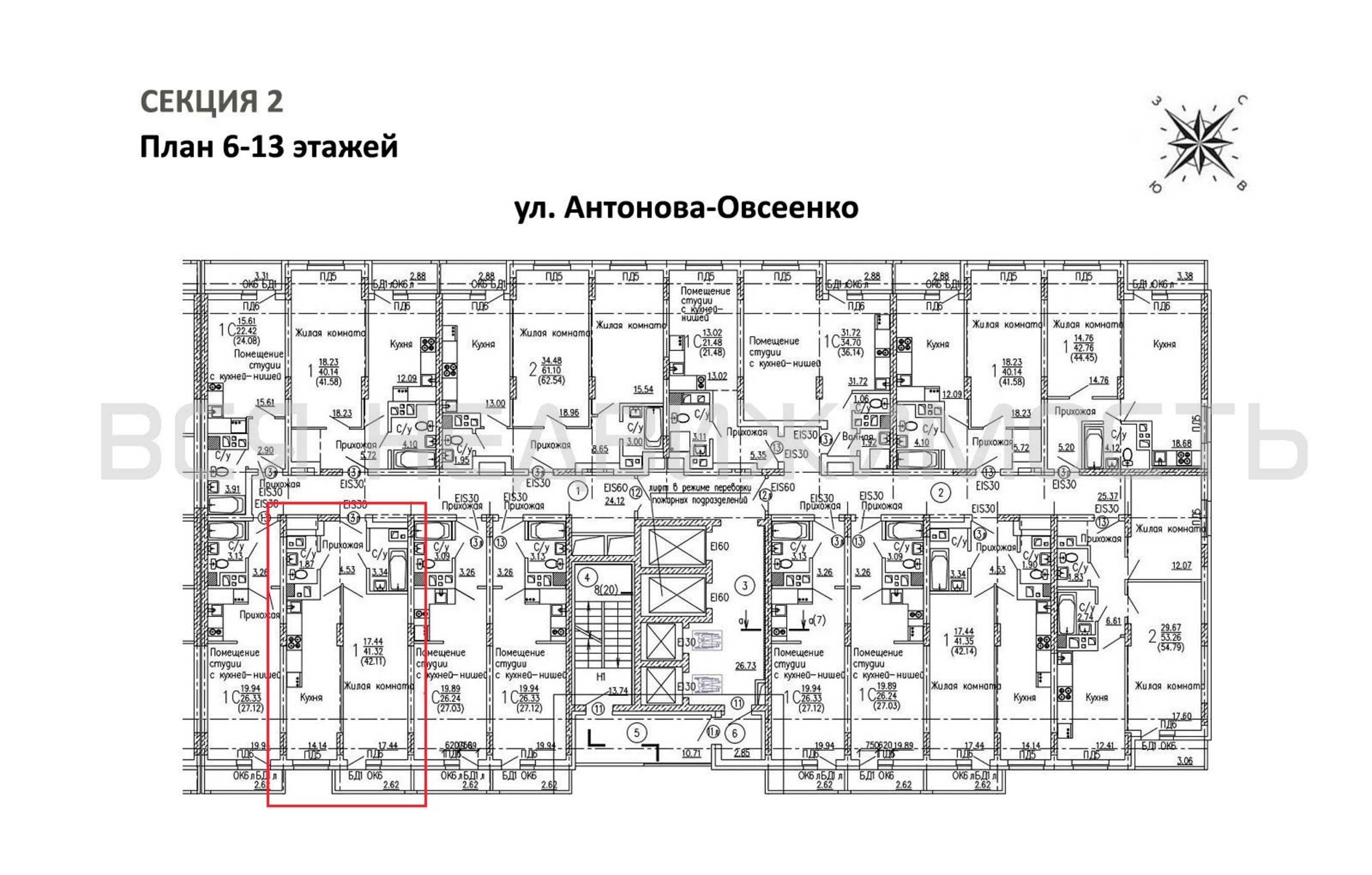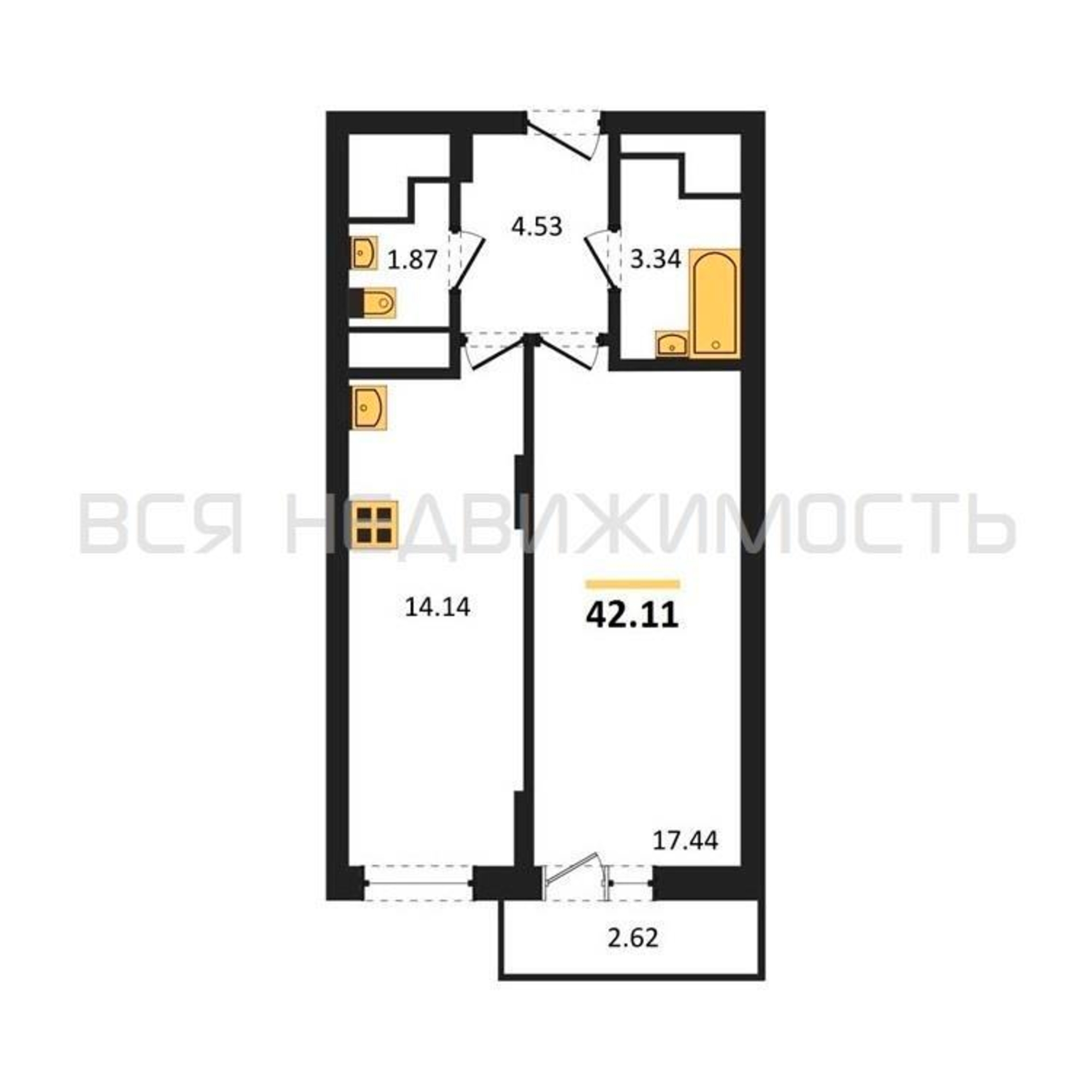 1-комнатная квартира, 42.11 м² 9/27 этаж ID объекта 100056541
