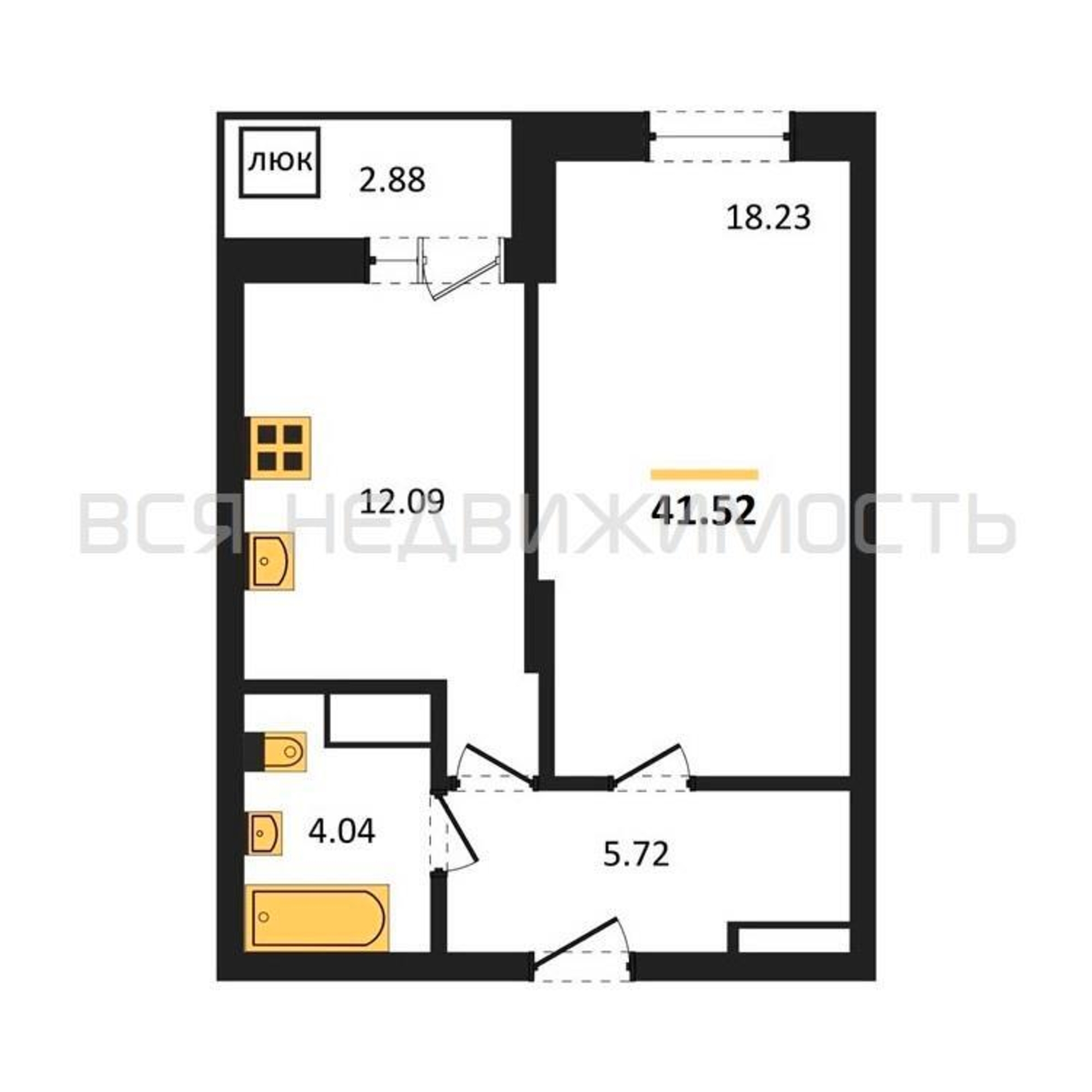 1-комнатная квартира, 41.52 м² 15/27 этаж ID объекта 100056568