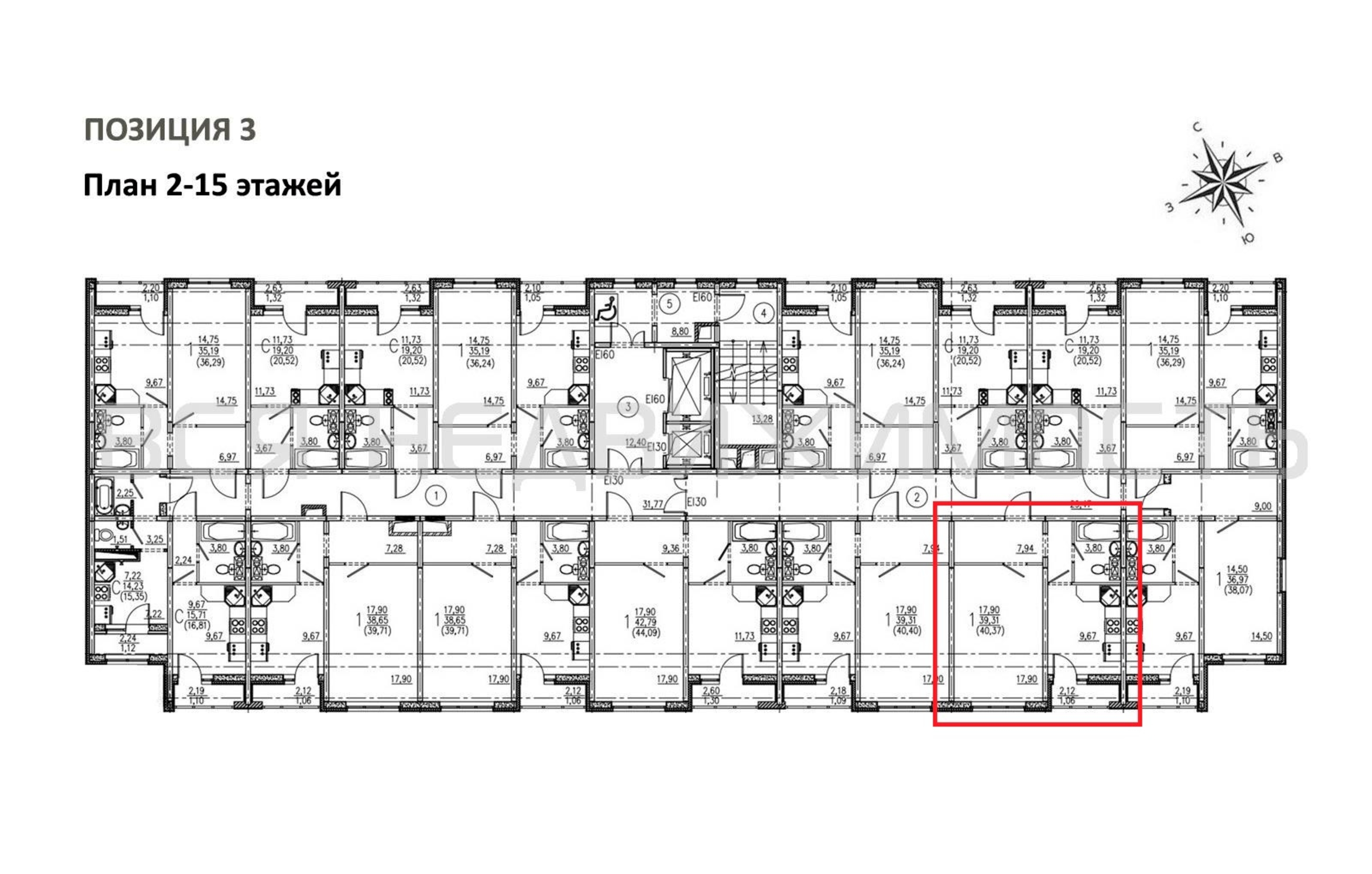 1-комнатная квартира, 40.37 м² 11/15 этаж ID объекта 100058144