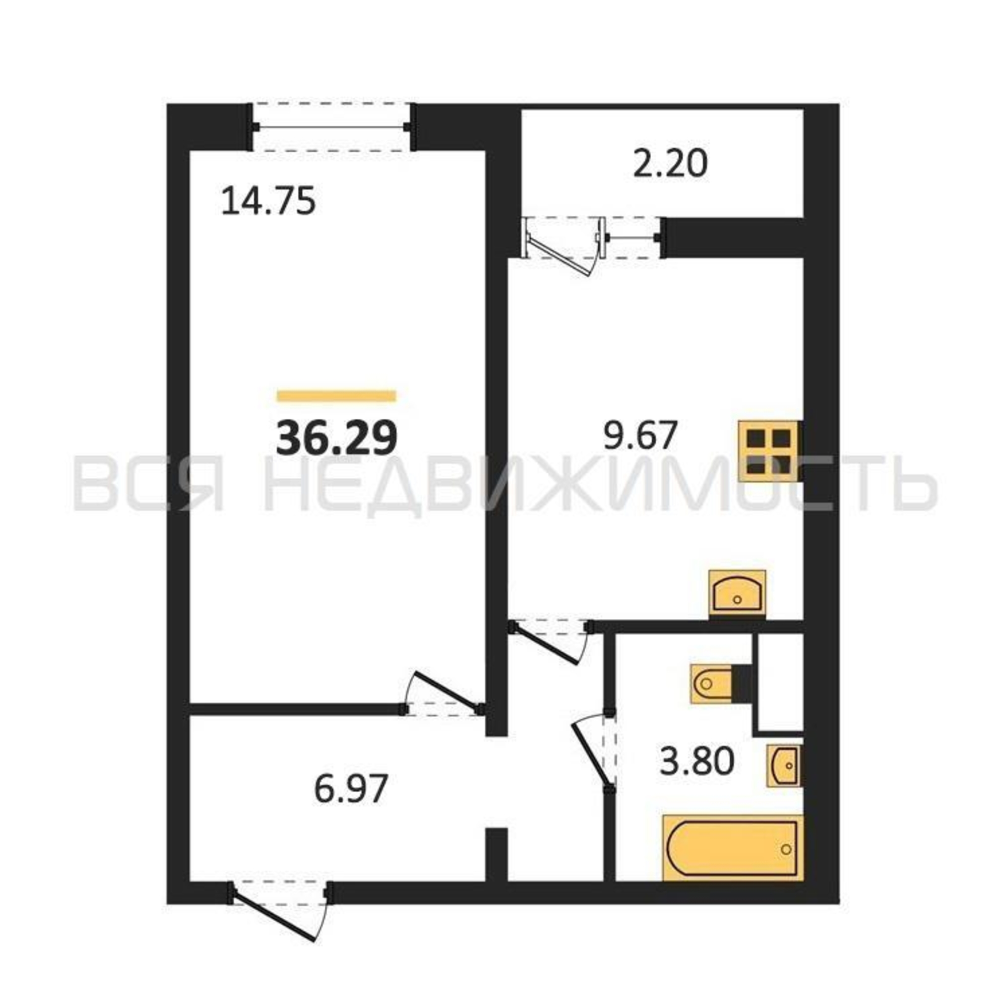 1-комнатная квартира, 36.29 м² 14/15 этаж ID объекта 100058195