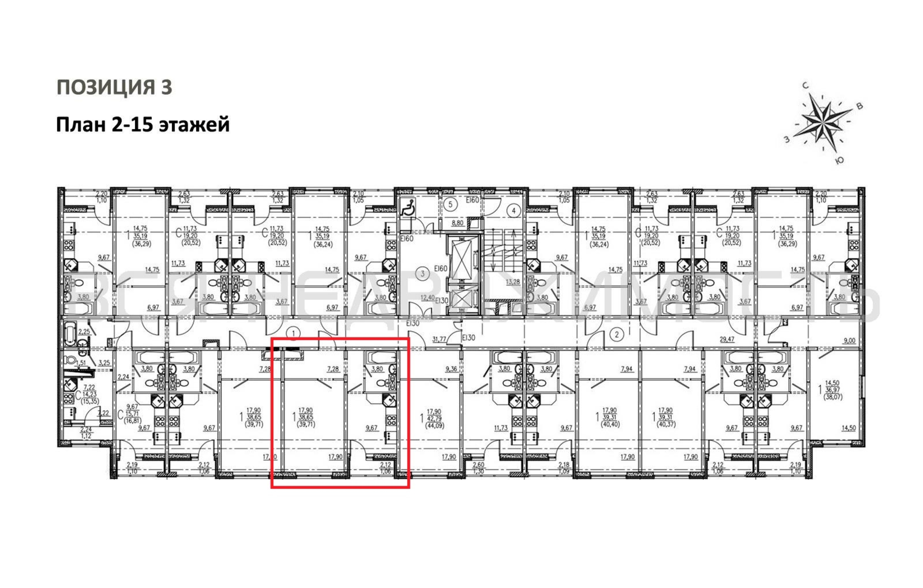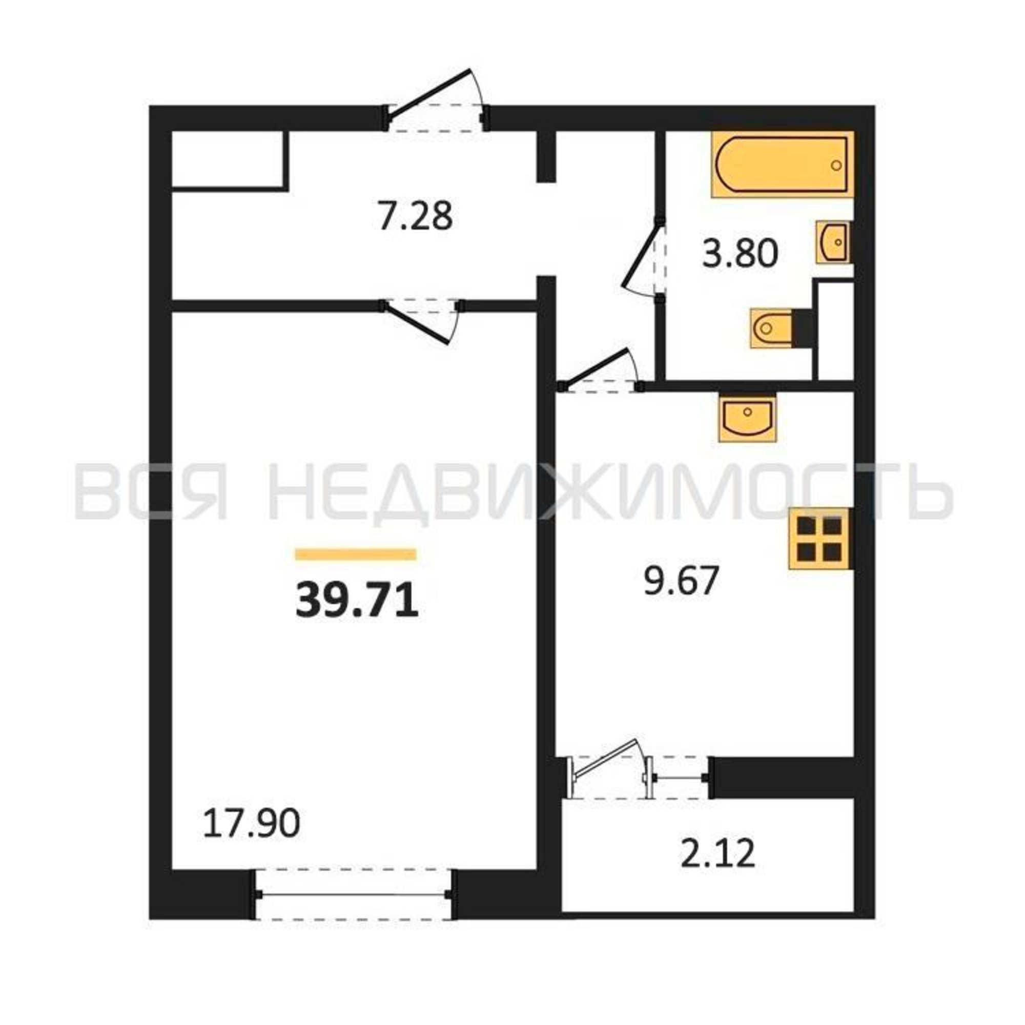 1-комнатная квартира, 39.71 м² 11/15 этаж ID объекта 100058218