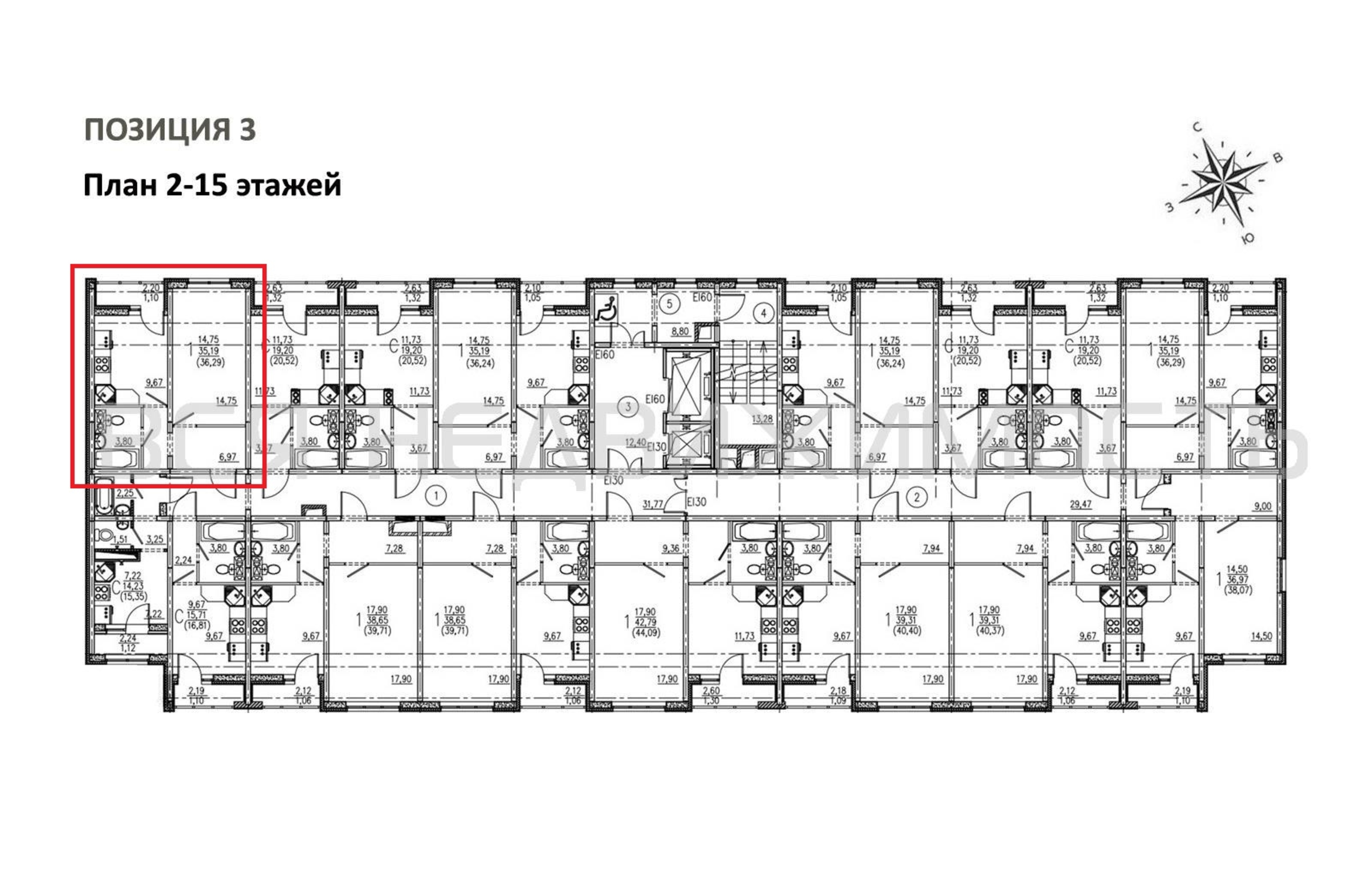 1-комнатная квартира, 36.29 м² 13/15 этаж ID объекта 100058248