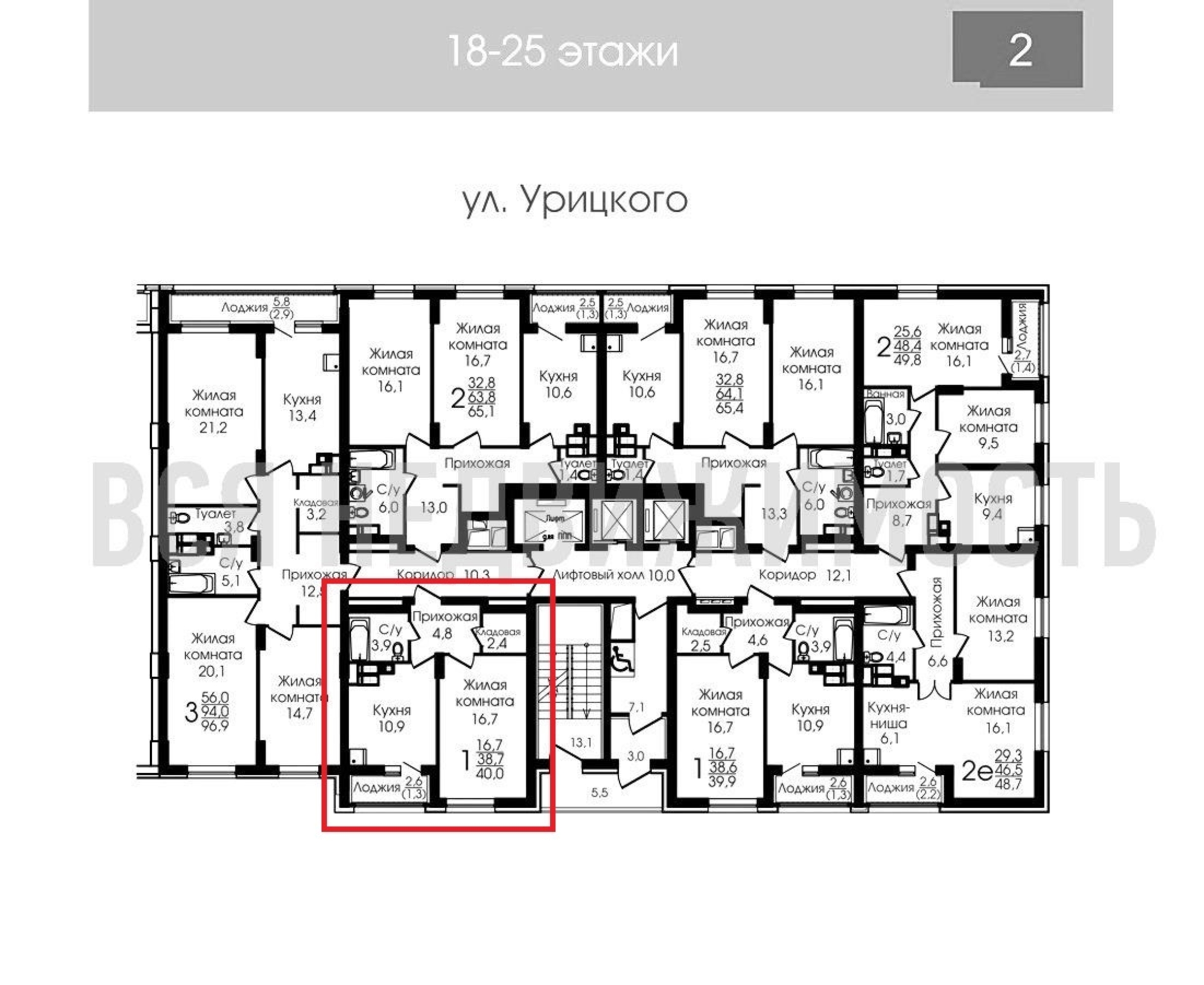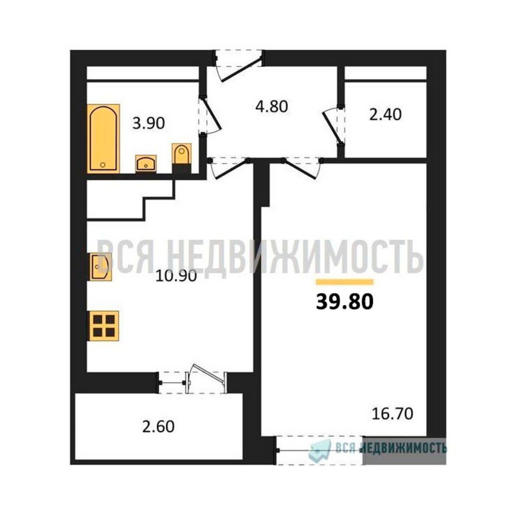 1-комнатная квартира, 39.80 м² 25/25 этаж ID объекта 100058758