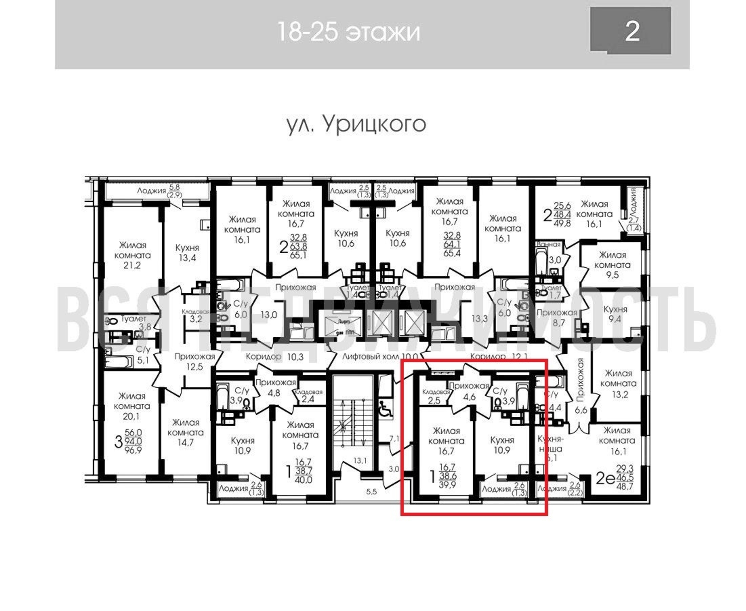 1-комнатная квартира, 39.80 м² 21/25 этаж ID объекта 100058820