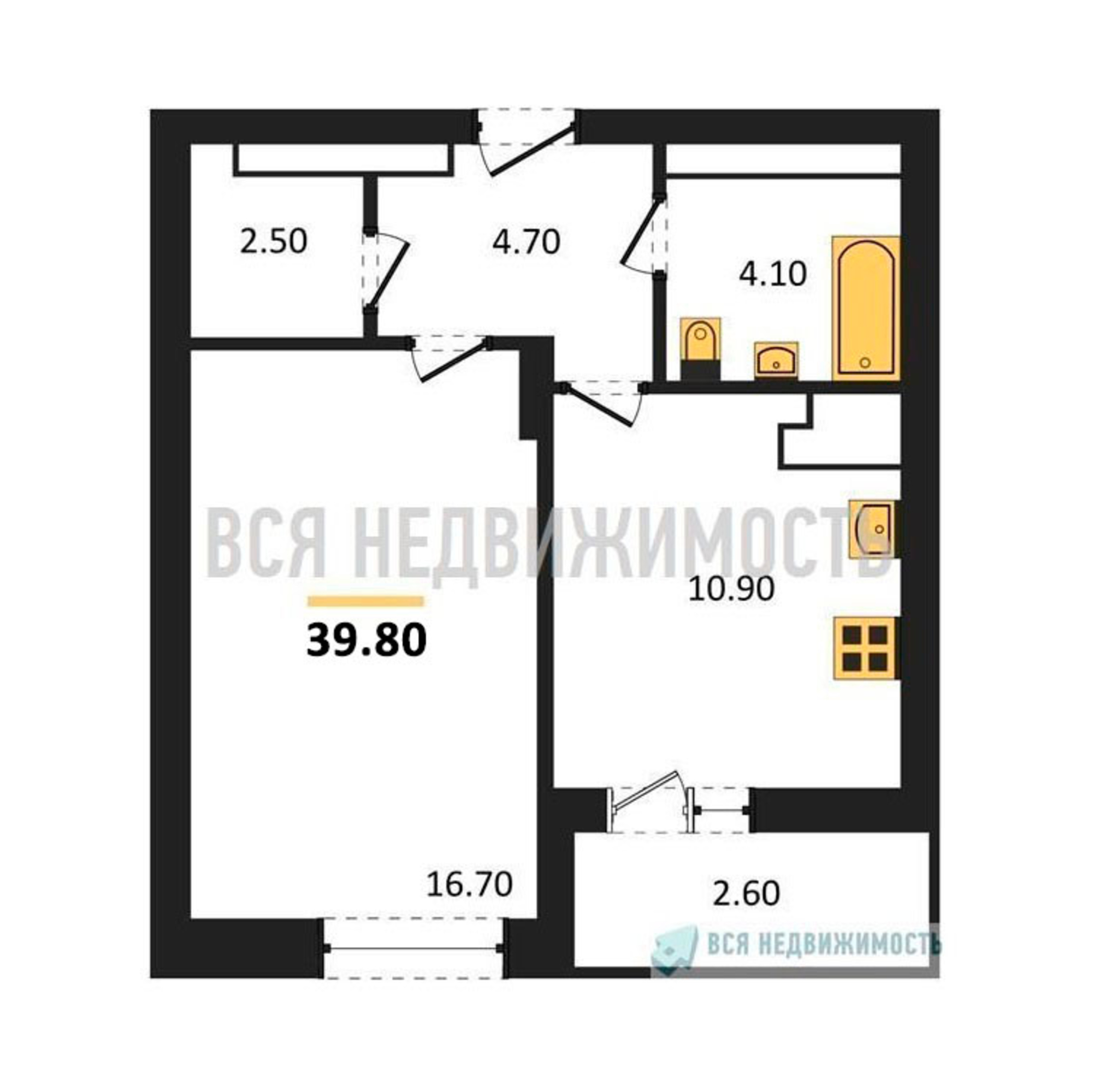 1-комнатная квартира, 39.80 м² 15/25 этаж ID объекта 100058895