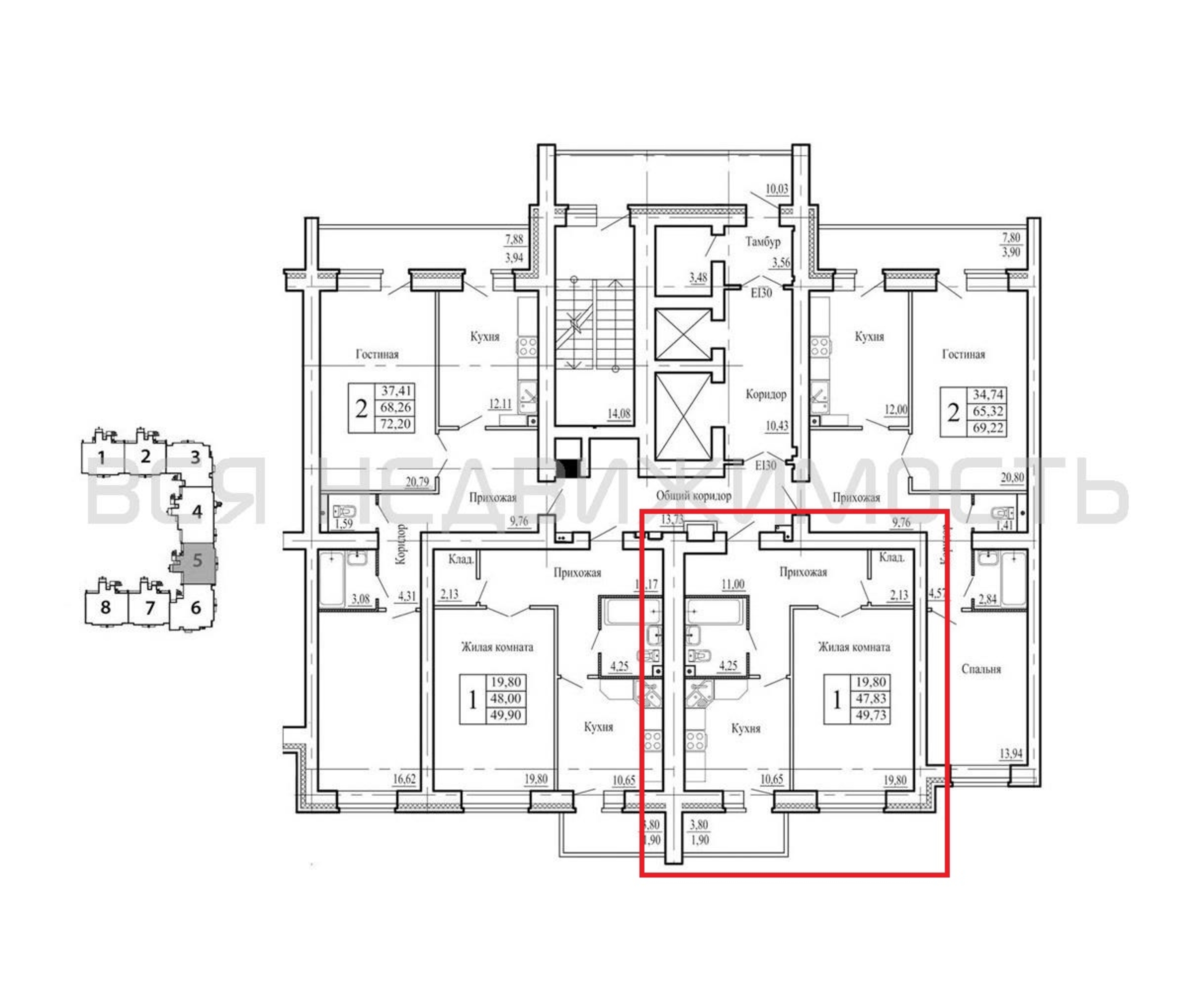 1-комнатная квартира, 50.60 м² 8/16 этаж ID объекта 100063383