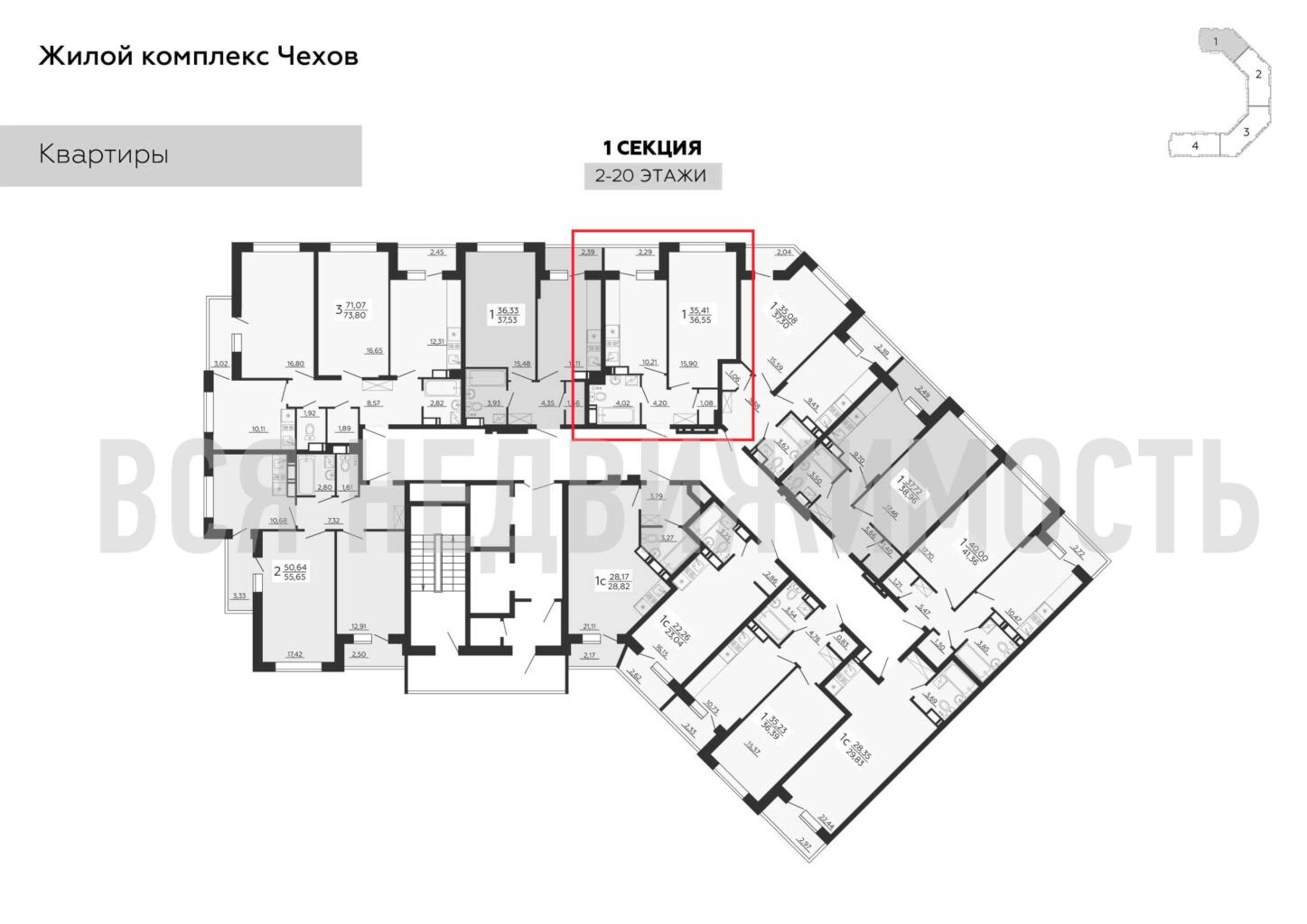 1-комнатная квартира, 36.55 м² 16/20 этаж ID объекта 100064799