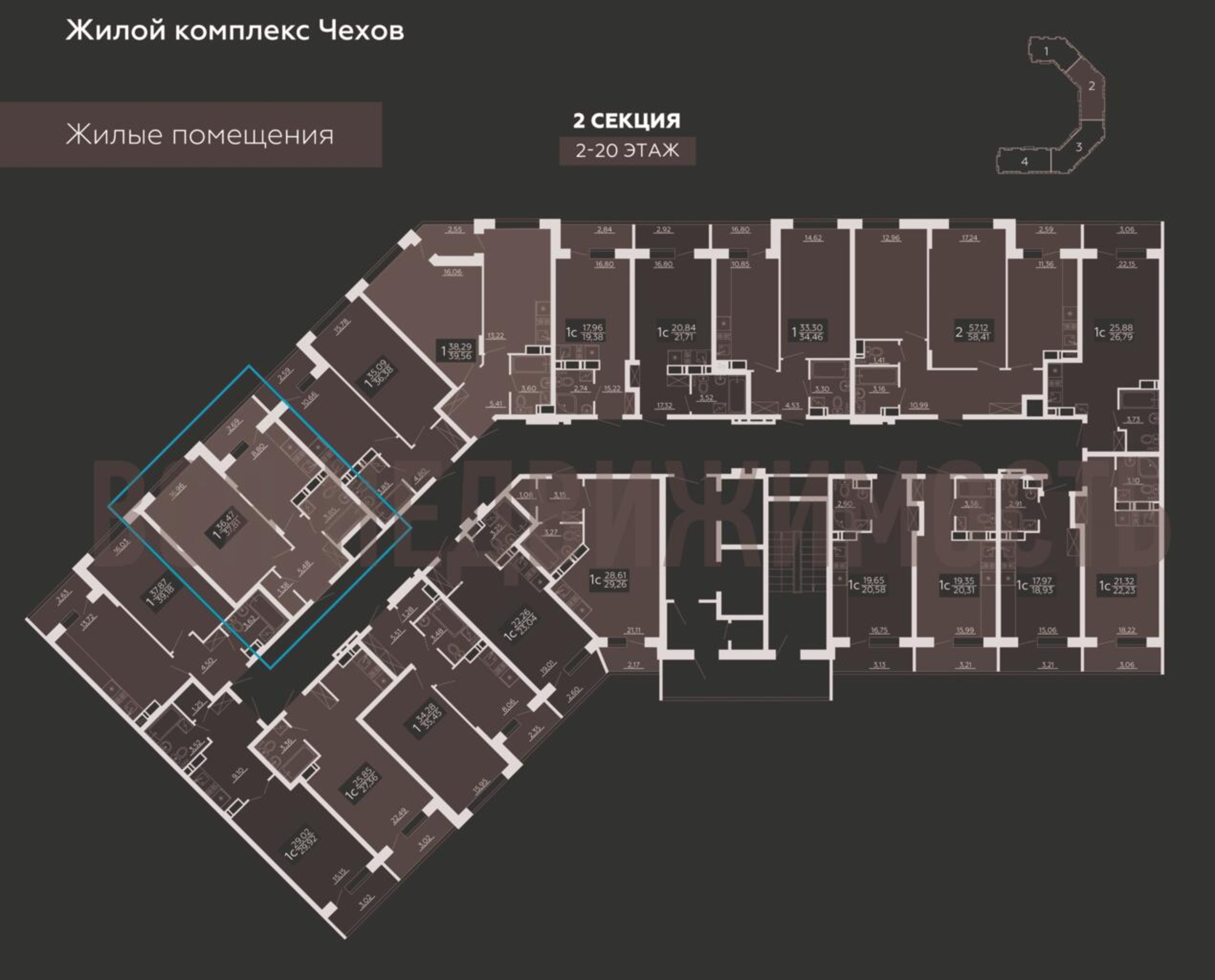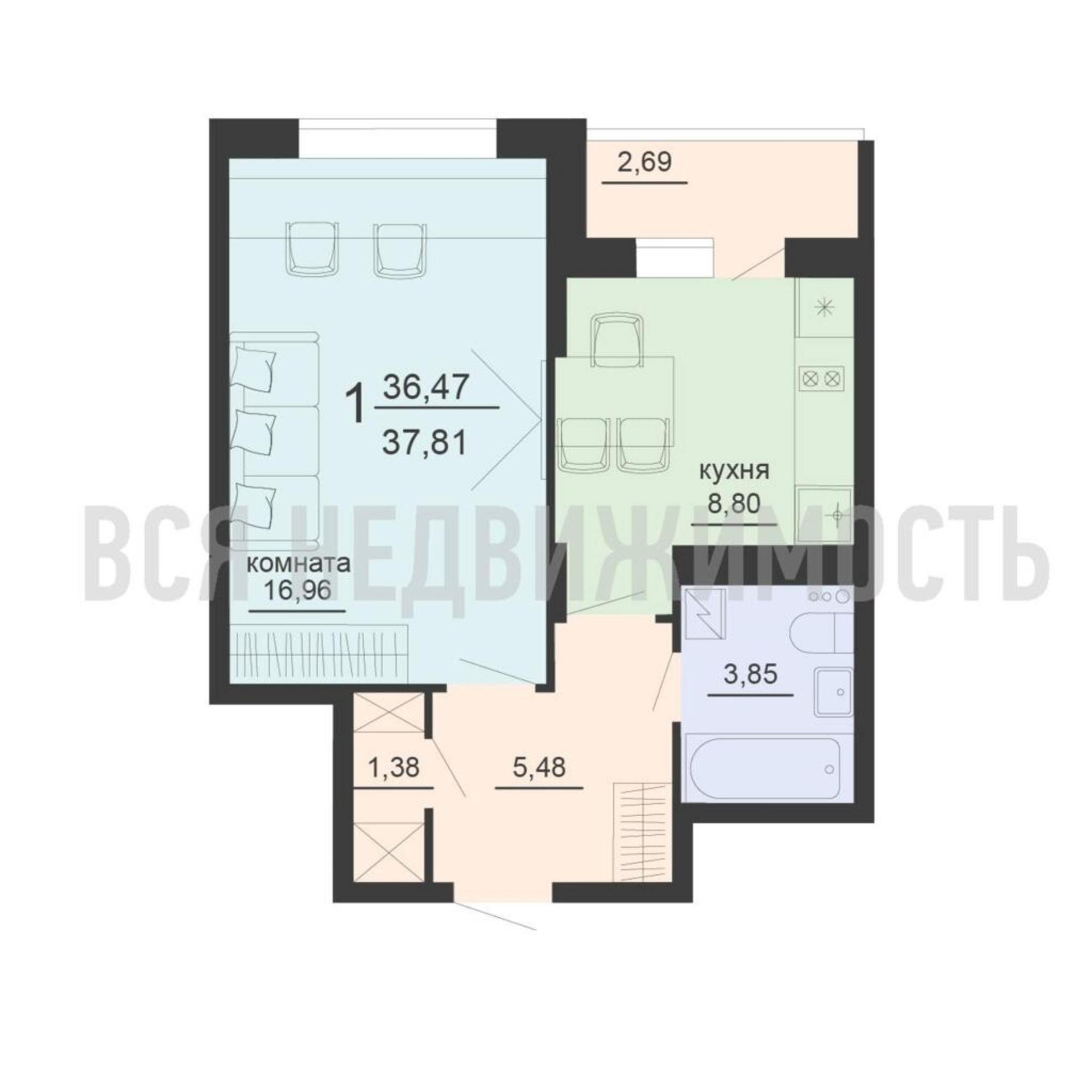 1-комнатная квартира, 37.81 м² 9/20 этаж ID объекта 100064880