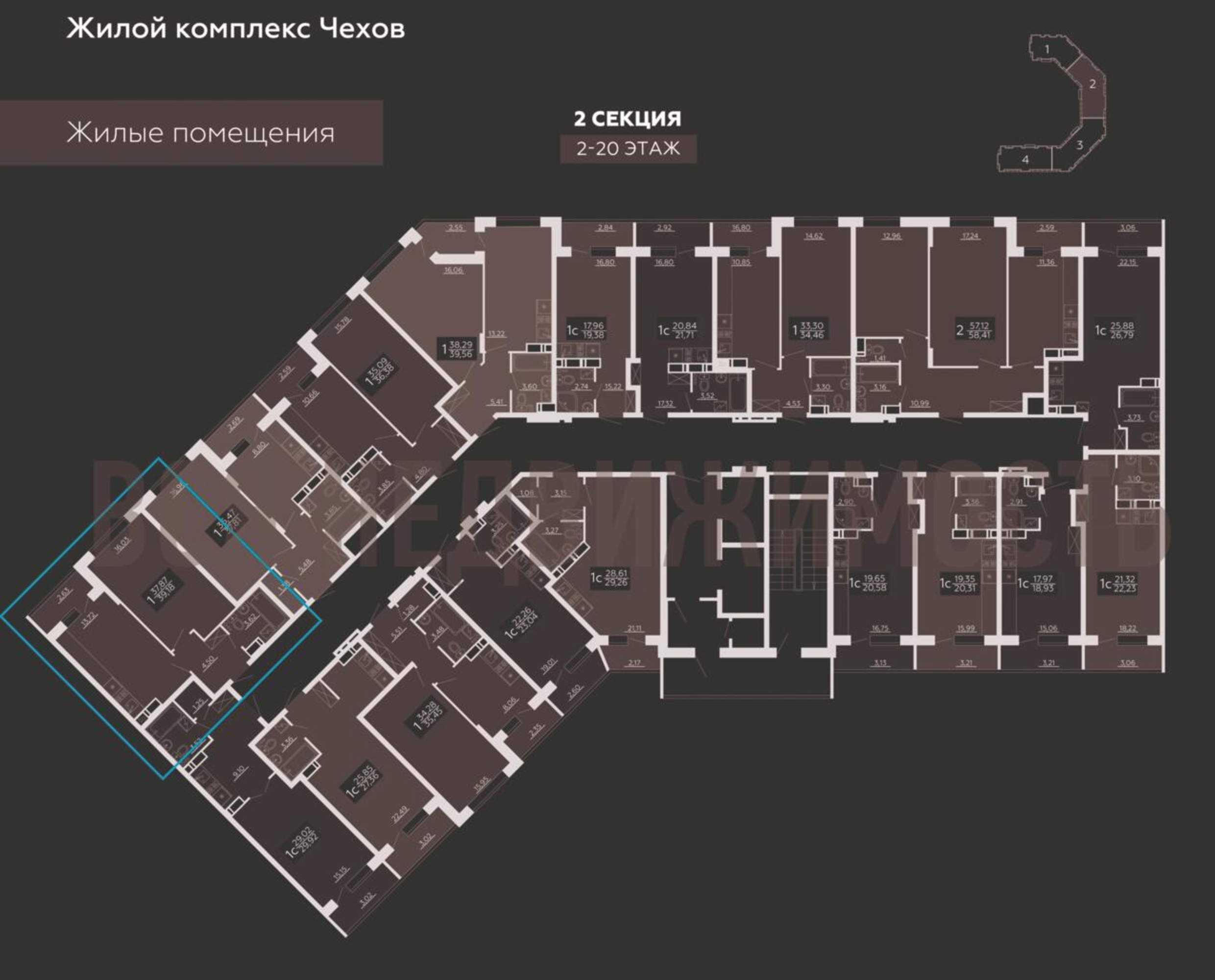 1-комнатная квартира, 39.18 м² 11/20 этаж ID объекта 100064912