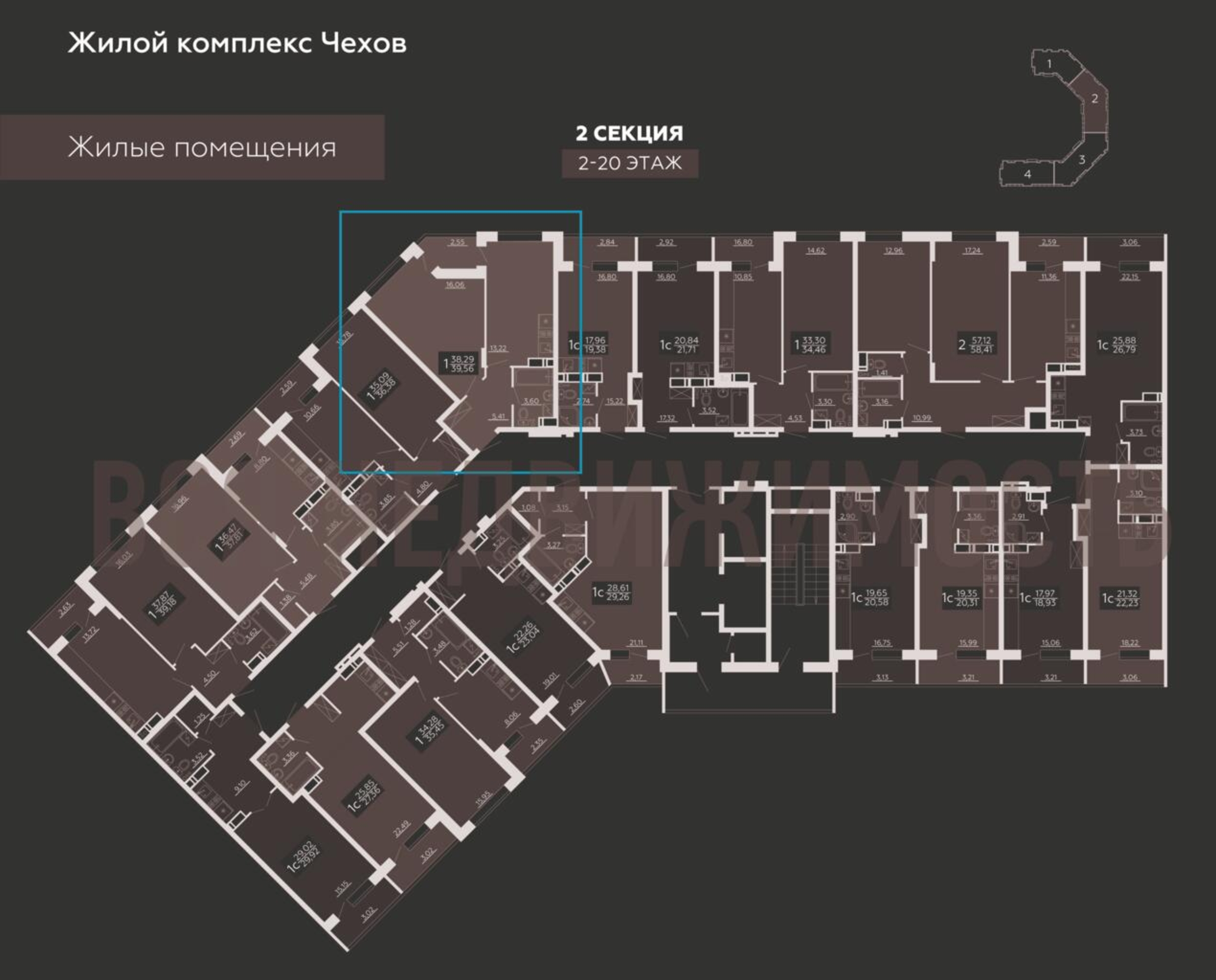 1-комнатная квартира, 39.56 м² 20/20 этаж ID объекта 100065031