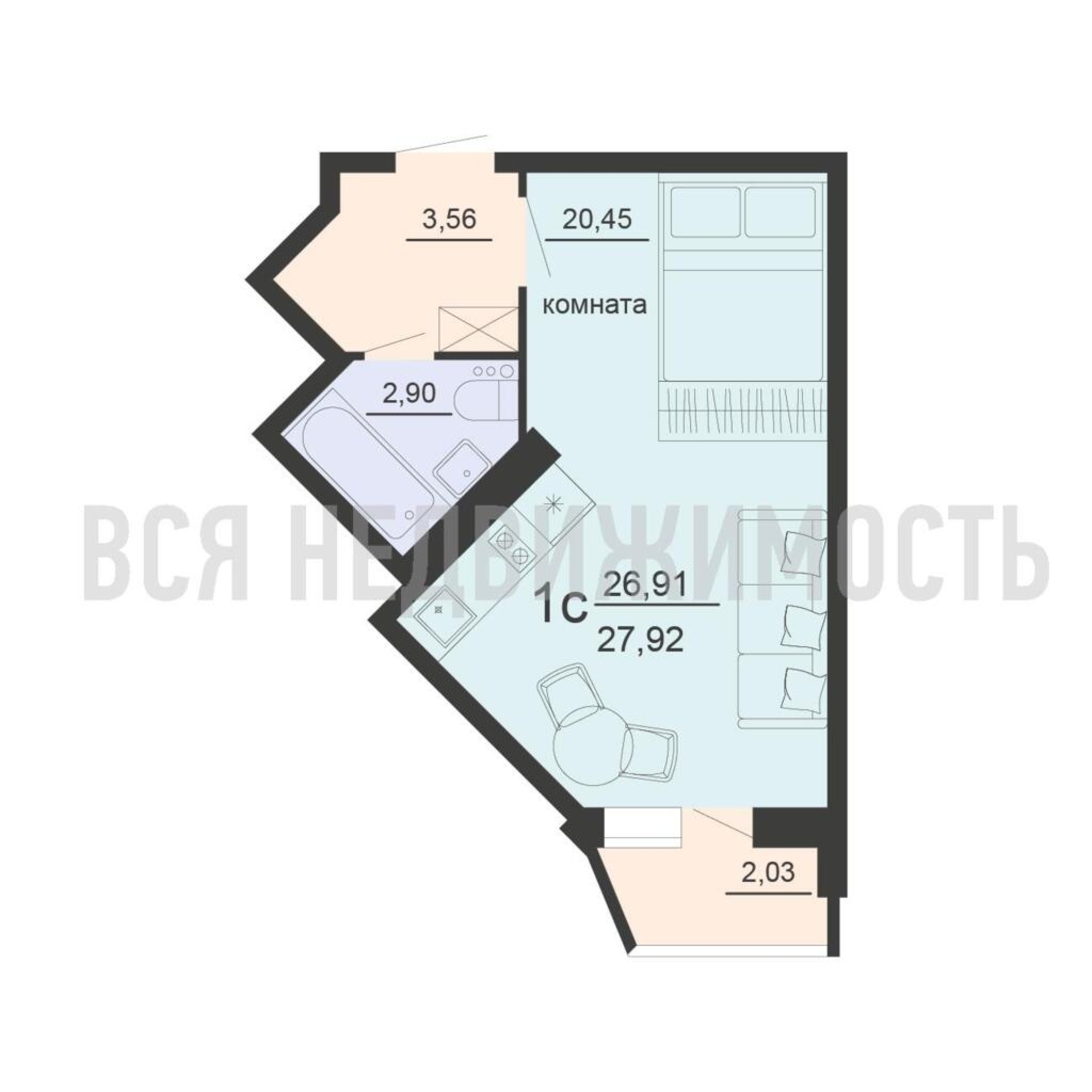 Квартиры-студии, 27.92 м² 9/20 этаж ID объекта 100065055