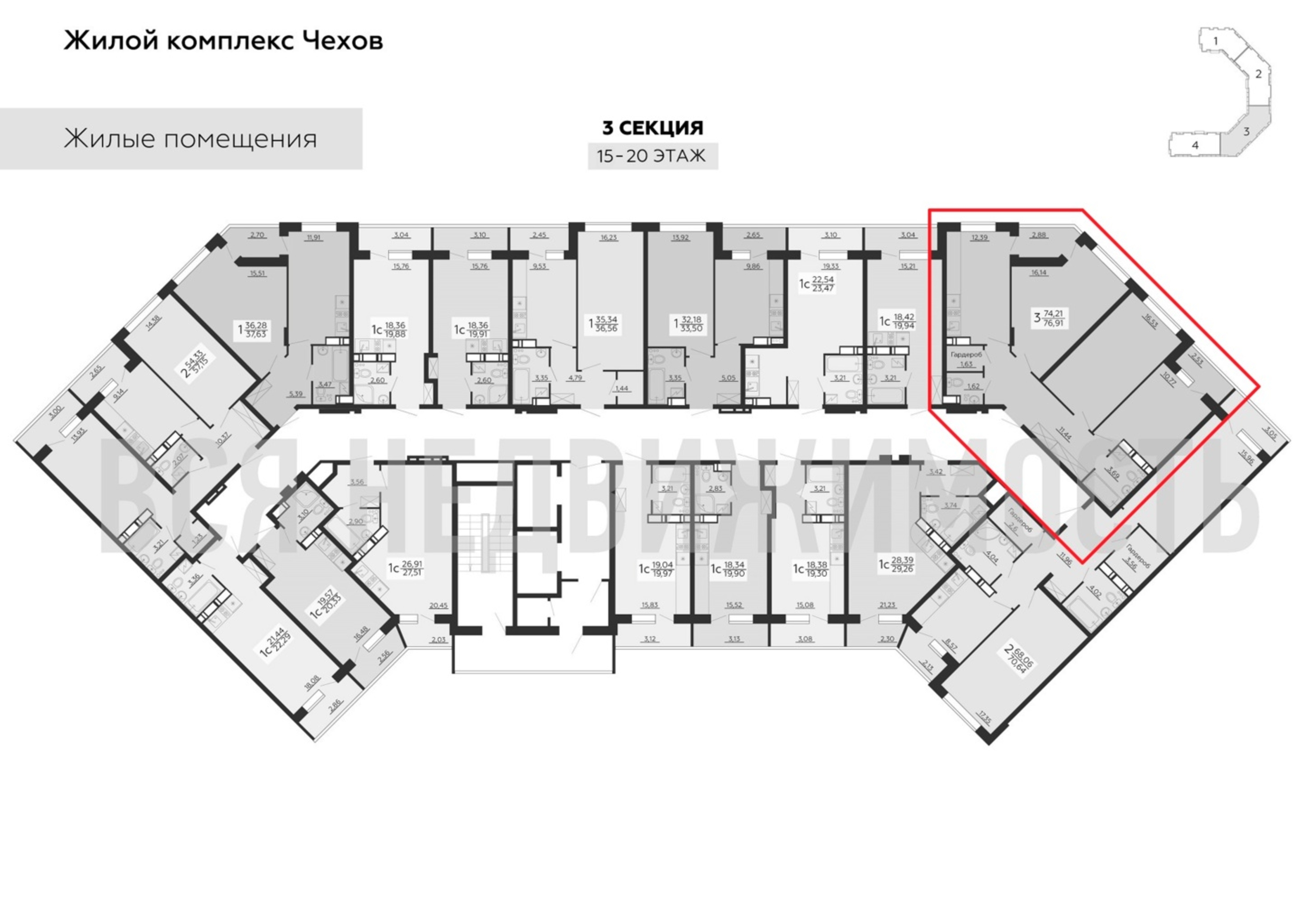 3-комнатная квартира, 76.91 м² 15/20 этаж ID объекта 100065136