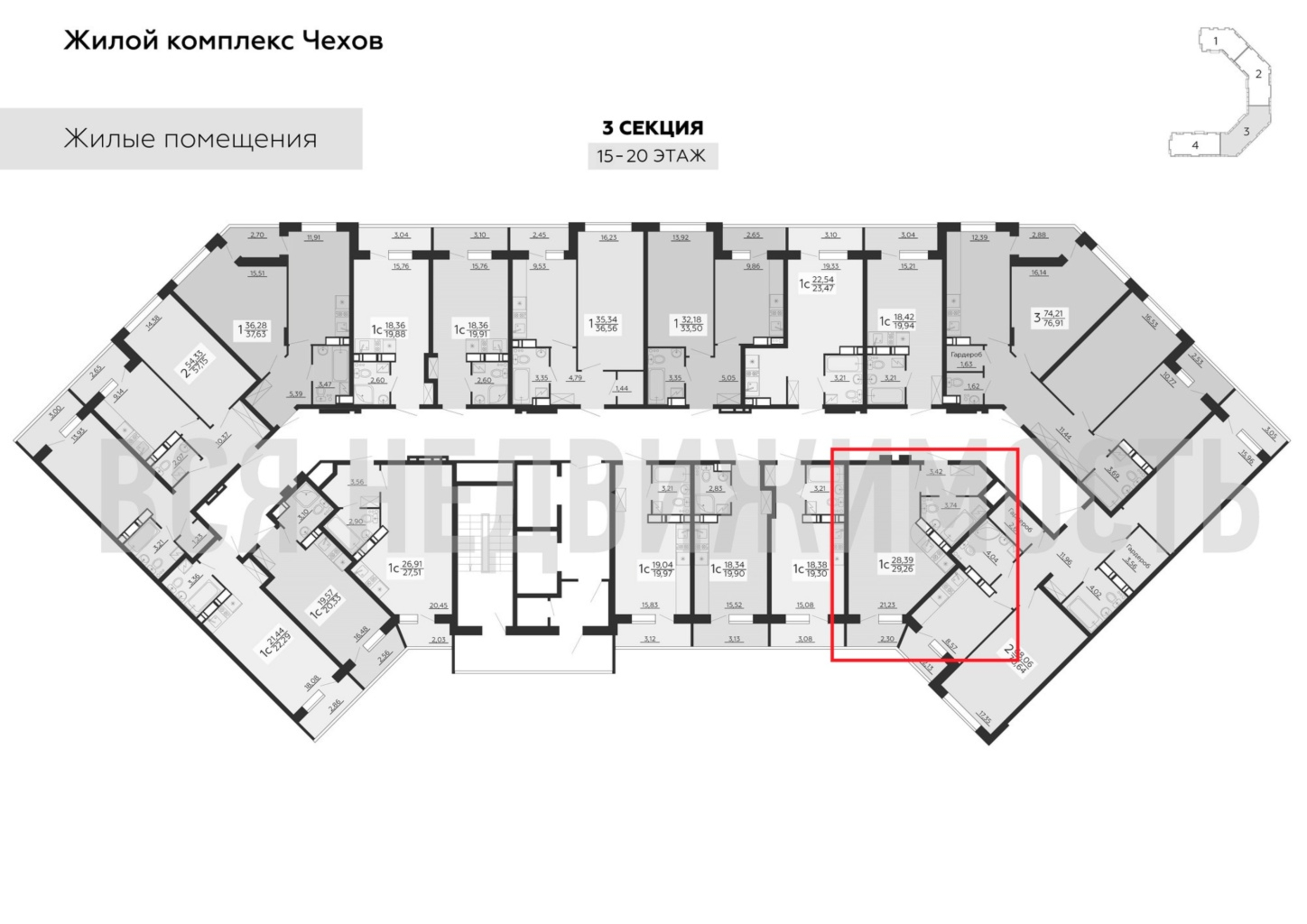 Квартиры-студии, 29.08 м² 15/20 этаж ID объекта 100065140