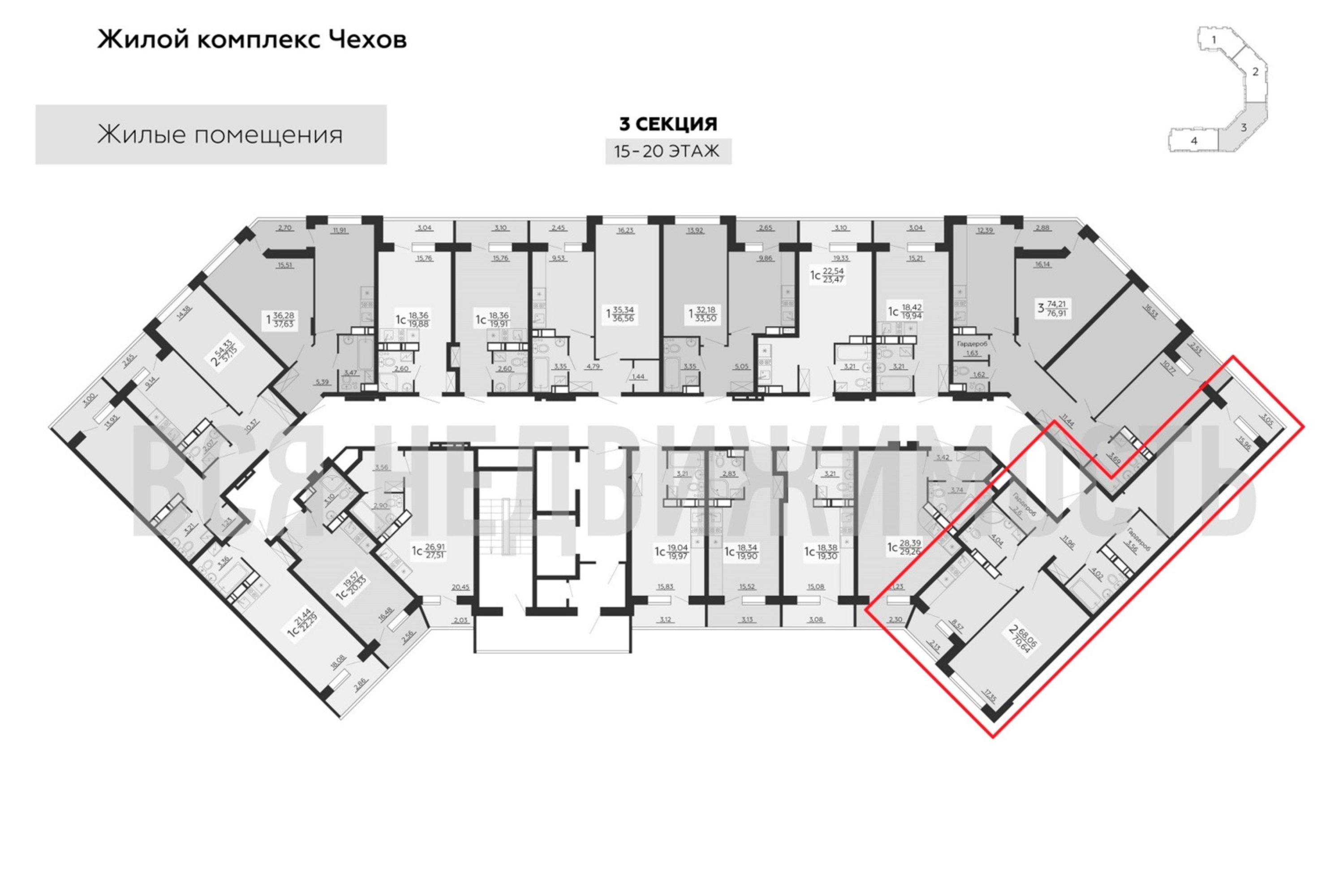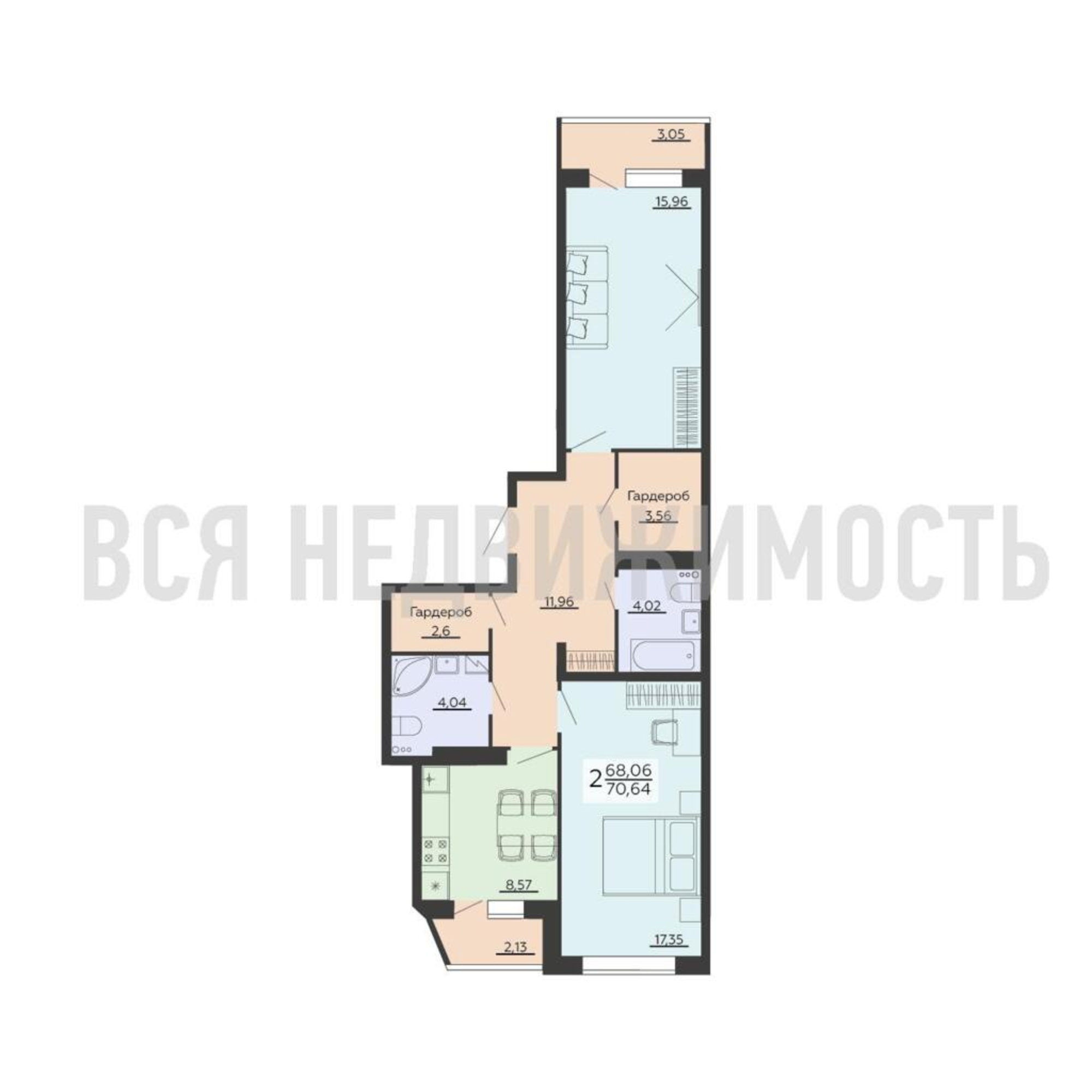 2-комнатная квартира, 70.64 м² 16/20 этаж ID объекта 100065158