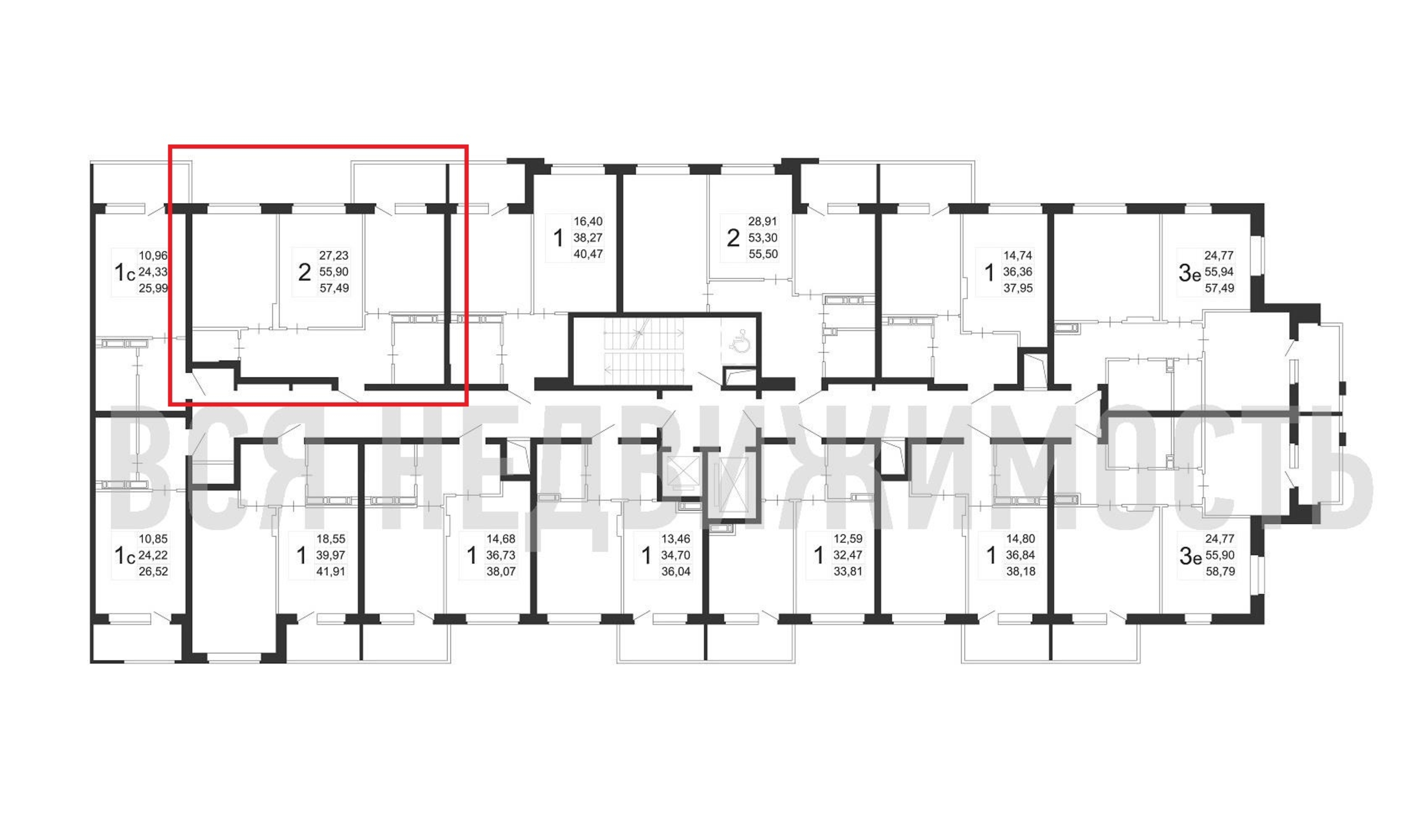 2-комнатная квартира, 57.49 м² 17/17 этаж ID объекта 100066756