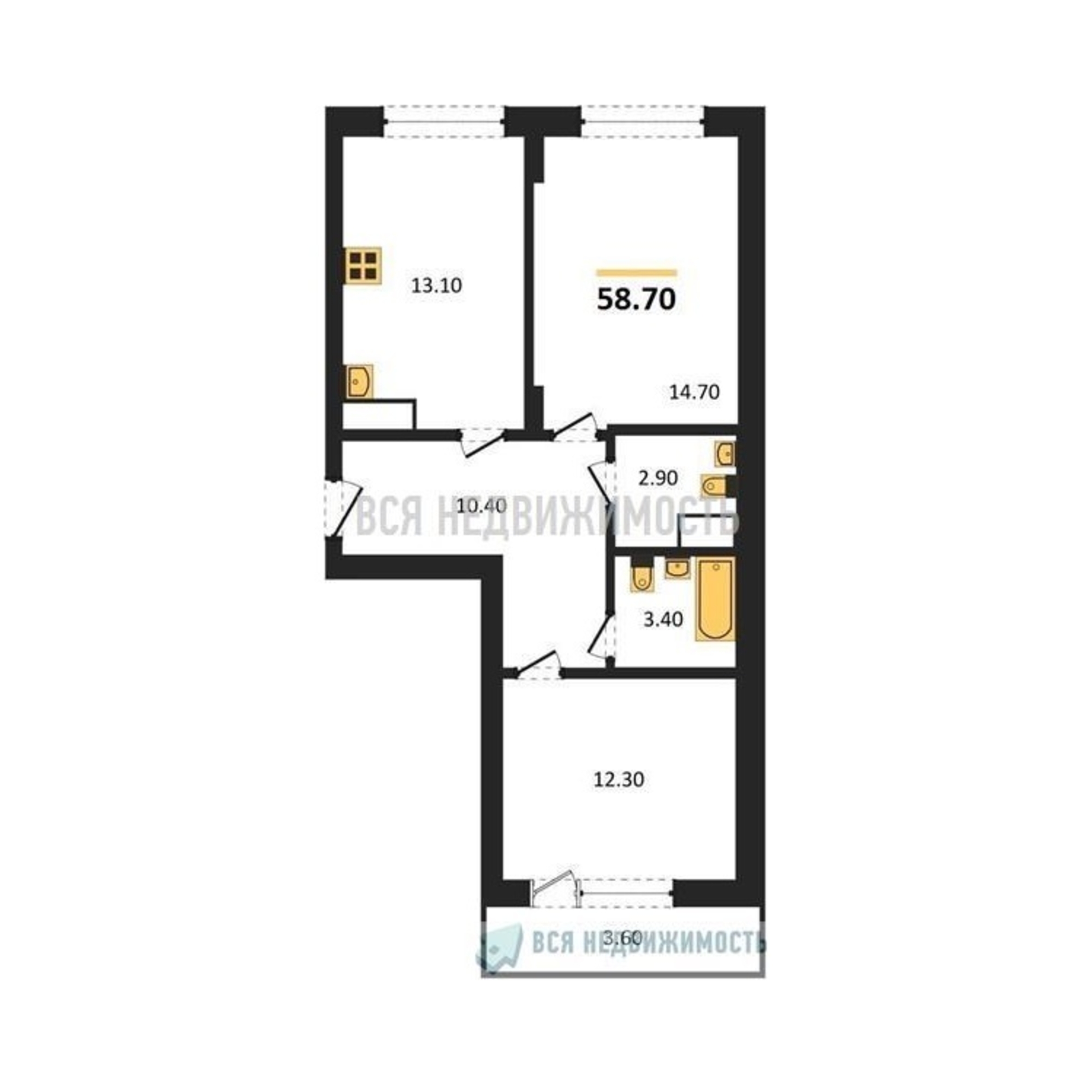 Строительная площадь58.70 м²