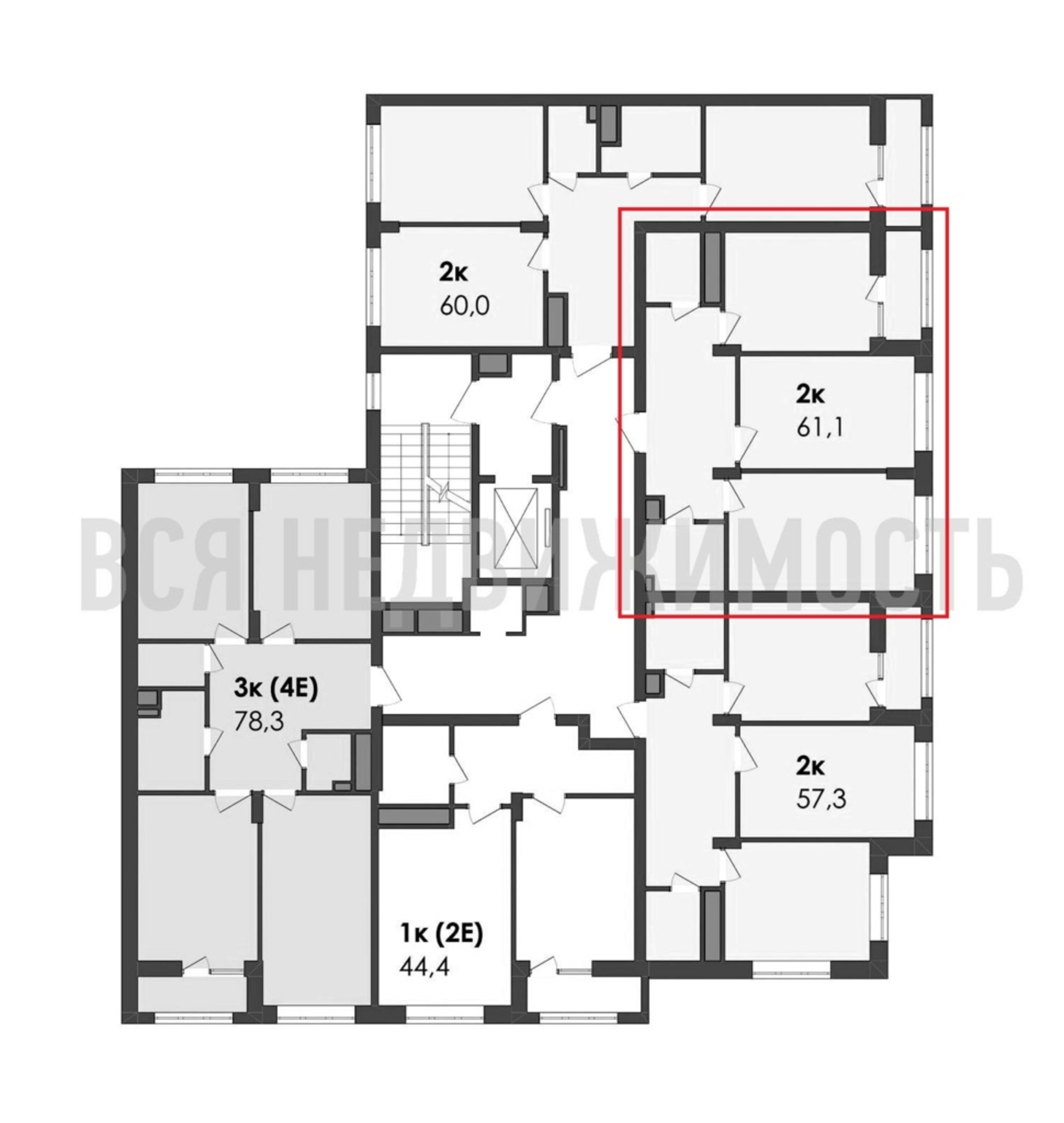 2-комнатная квартира, 61.10 м² 5/9 этаж ID объекта 100067270