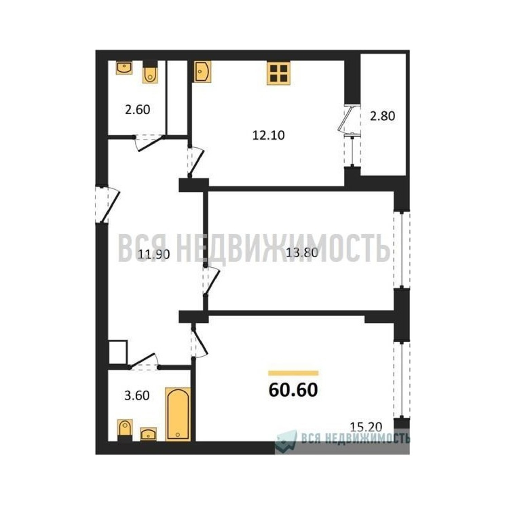Строительная площадь60.60 м²