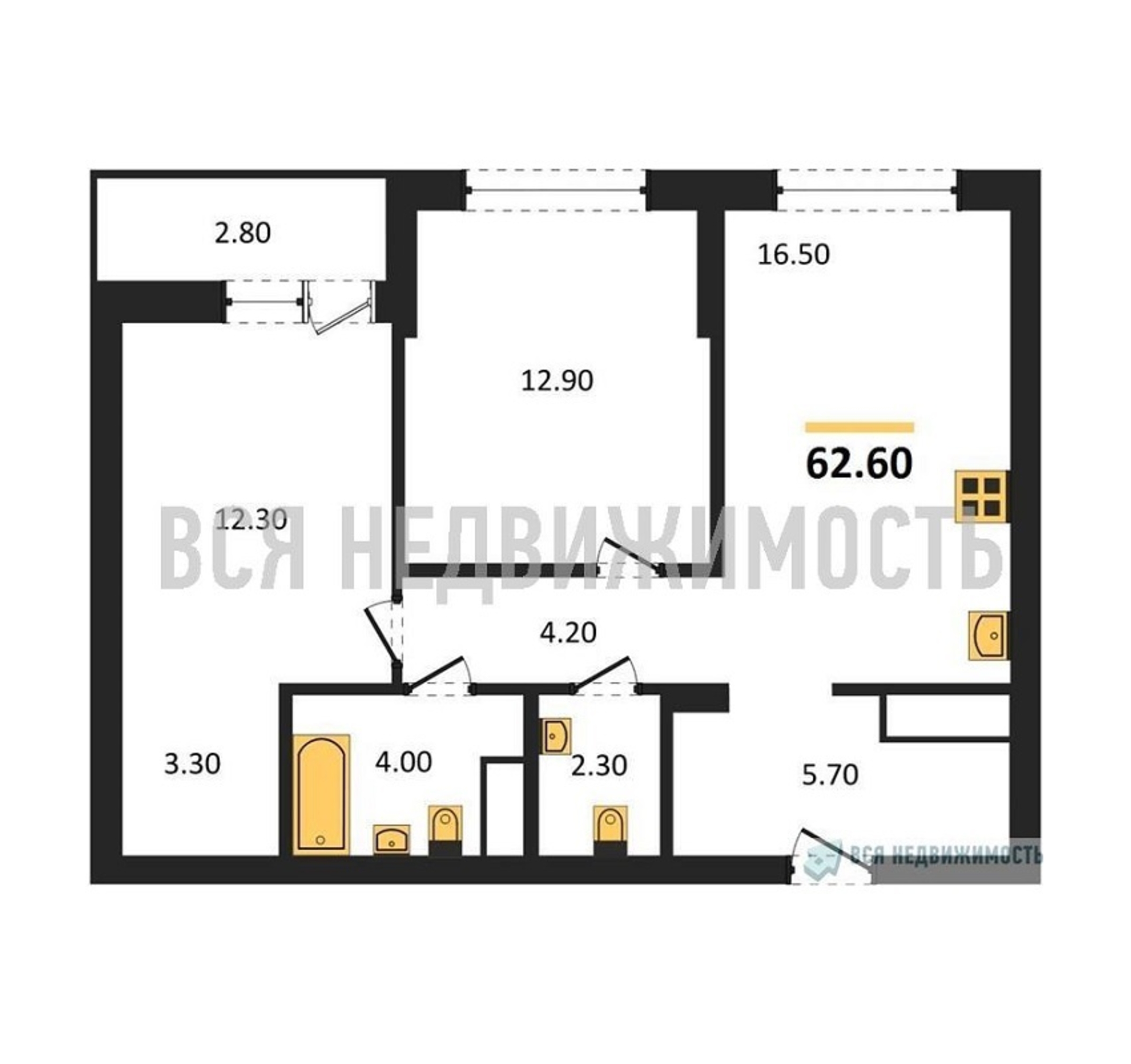Строительная площадь62.60 м²