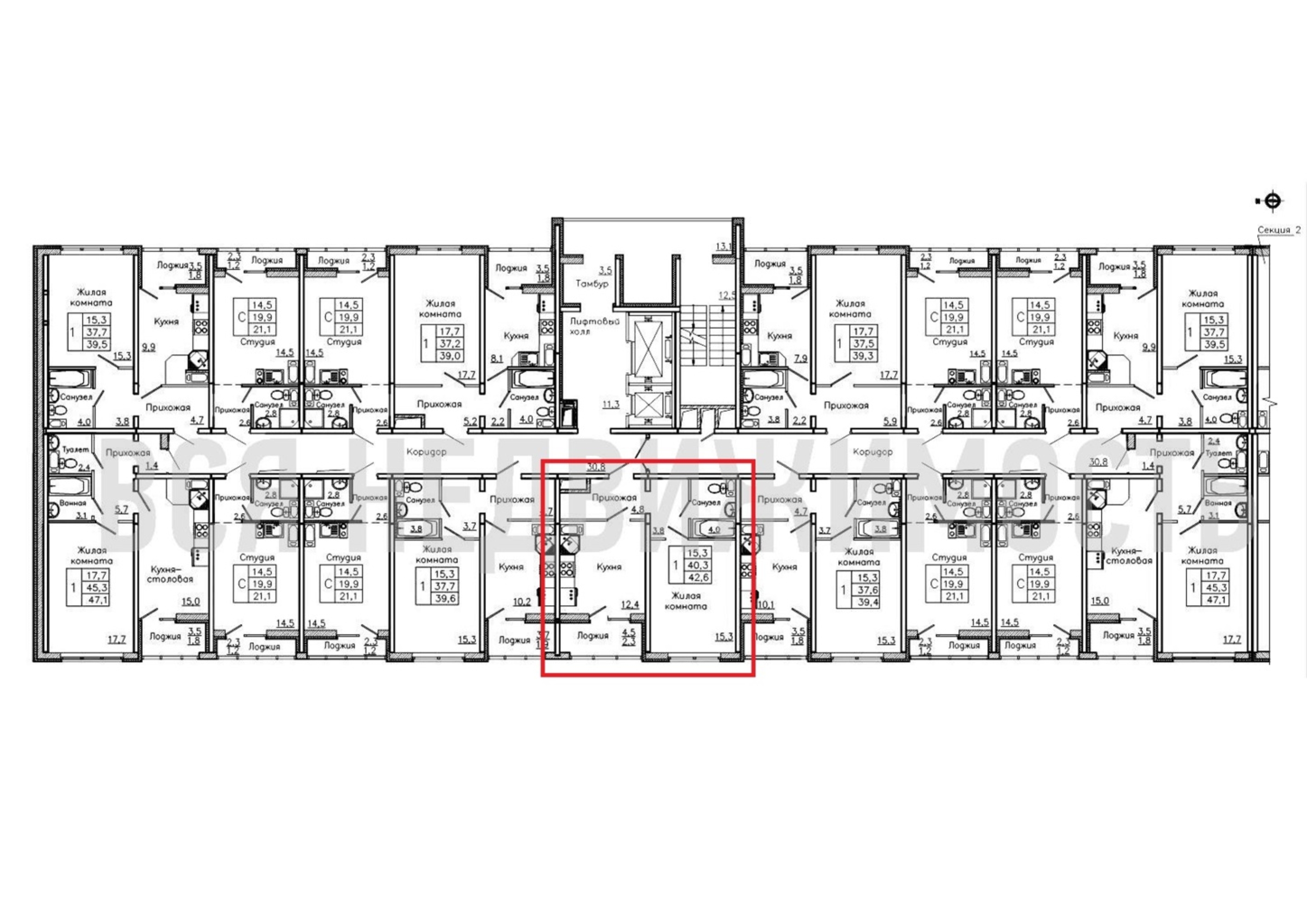 1-комнатная квартира, 42.60 м² 2/18 этаж ID объекта 100067659