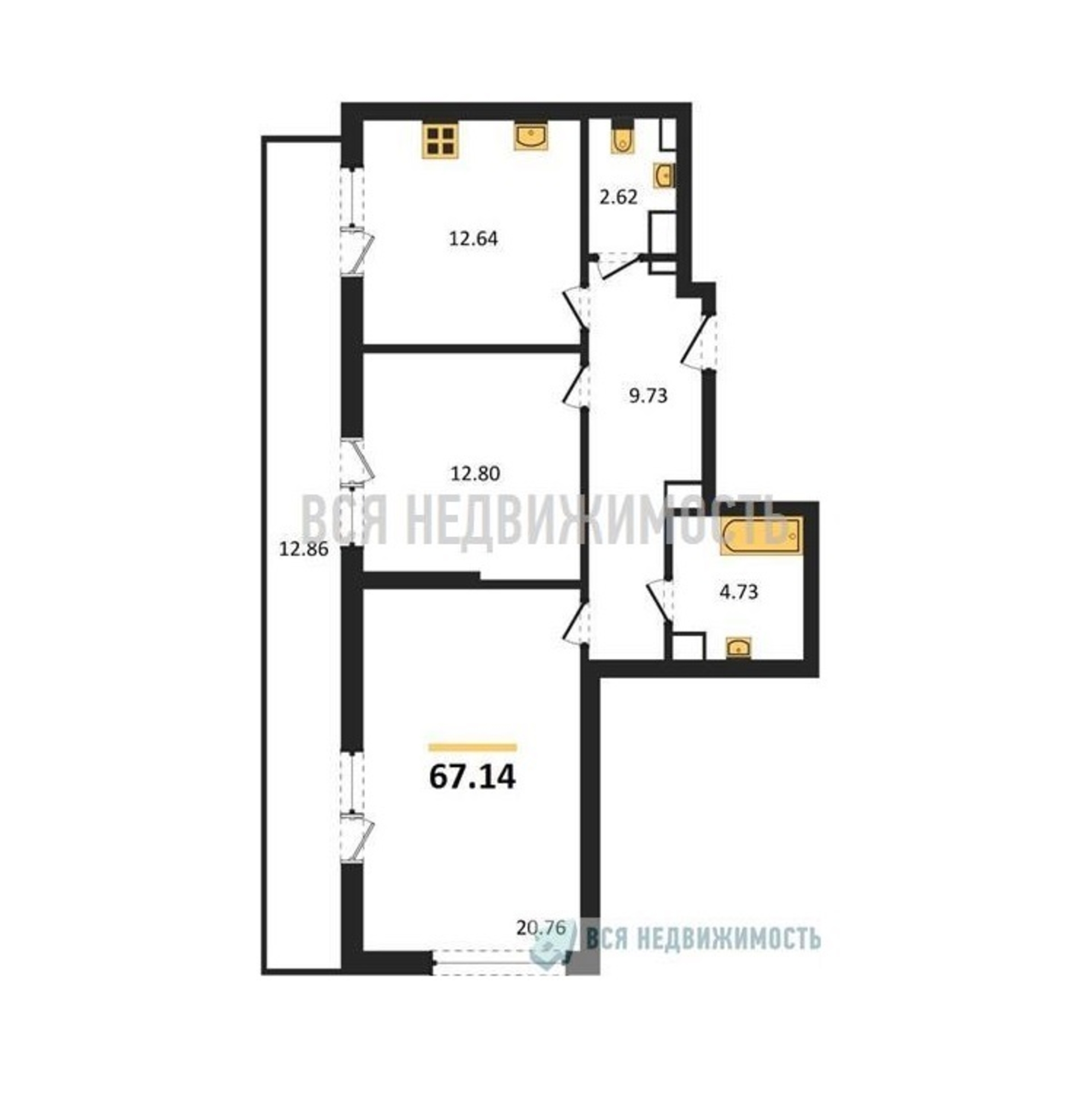 2-комнатная квартира, 67.14 м² 5/19 этаж ID объекта 100069316