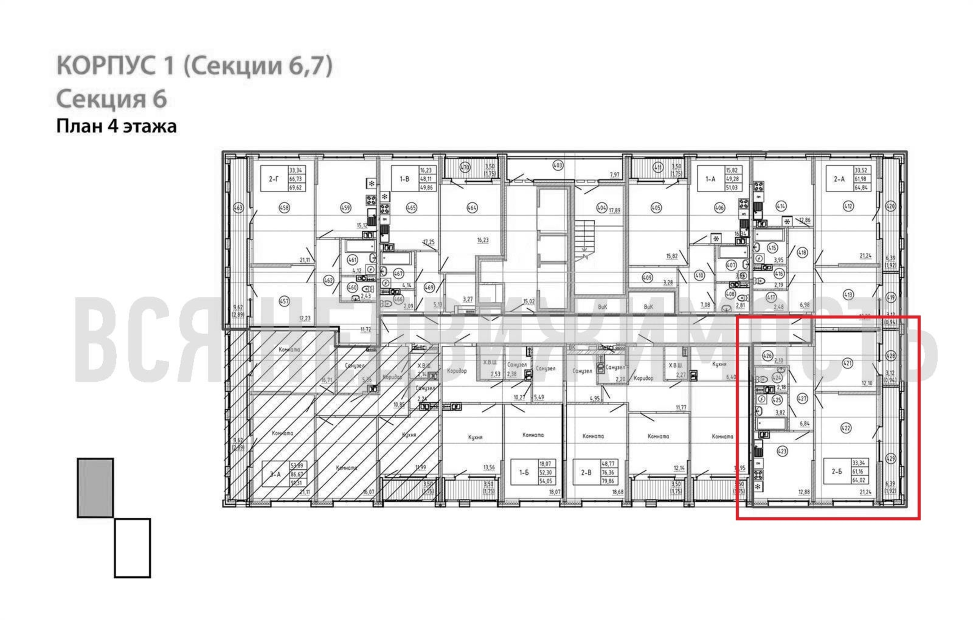 2-комнатная квартира, 64.02 м² 4/23 этаж ID объекта 100069435