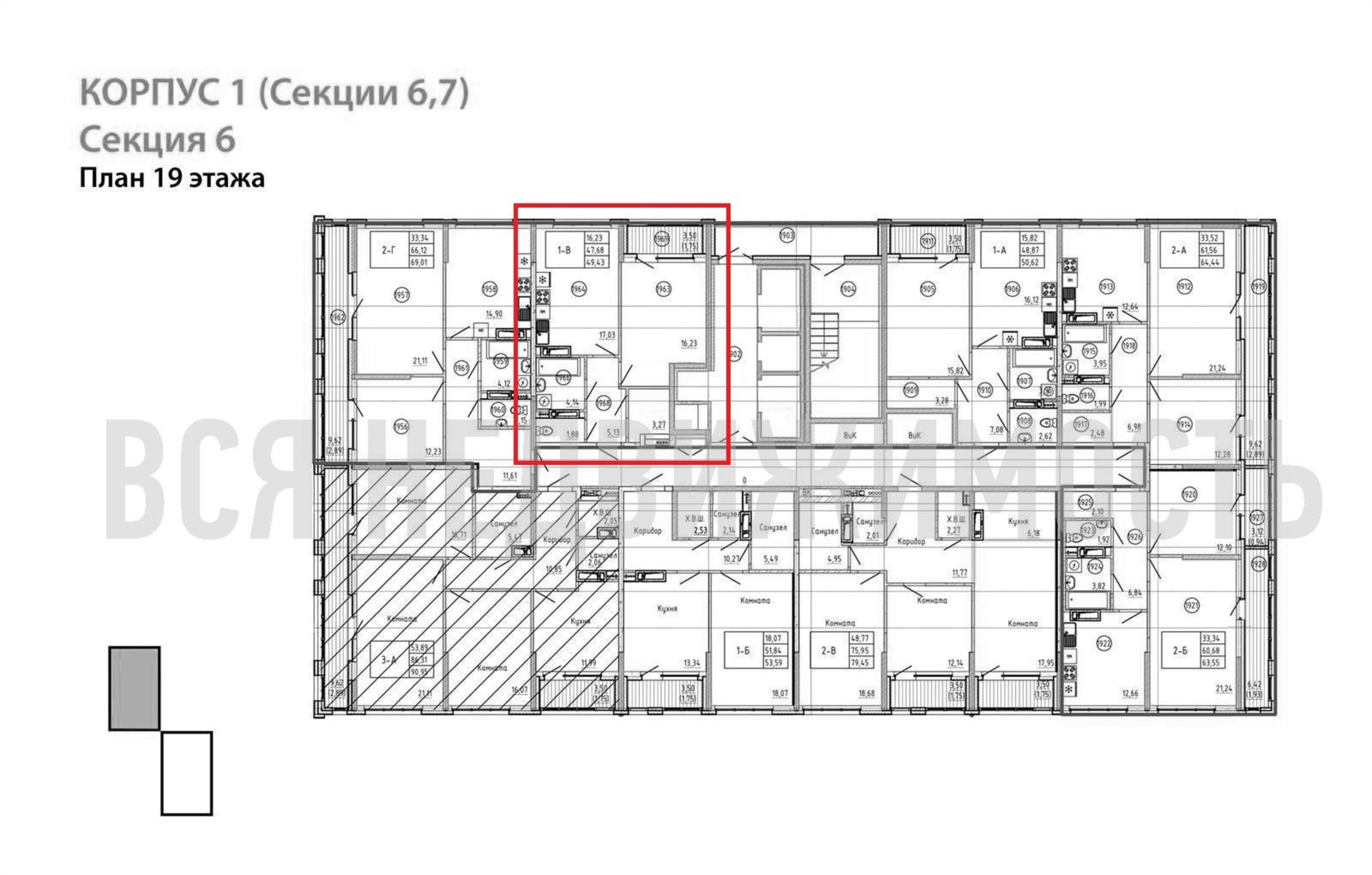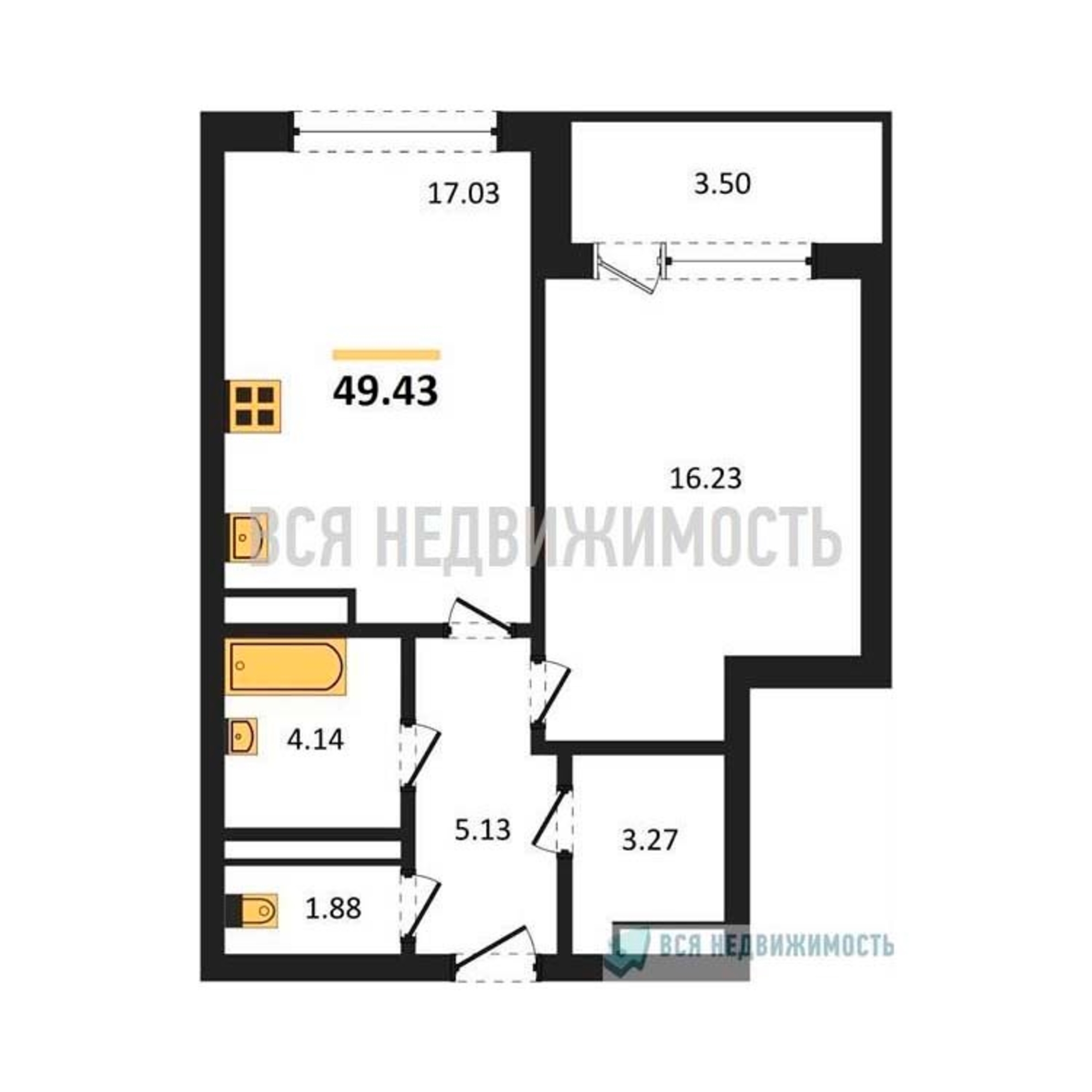 1-комнатная квартира, 49.43 м² 19/23 этаж ID объекта 100069551