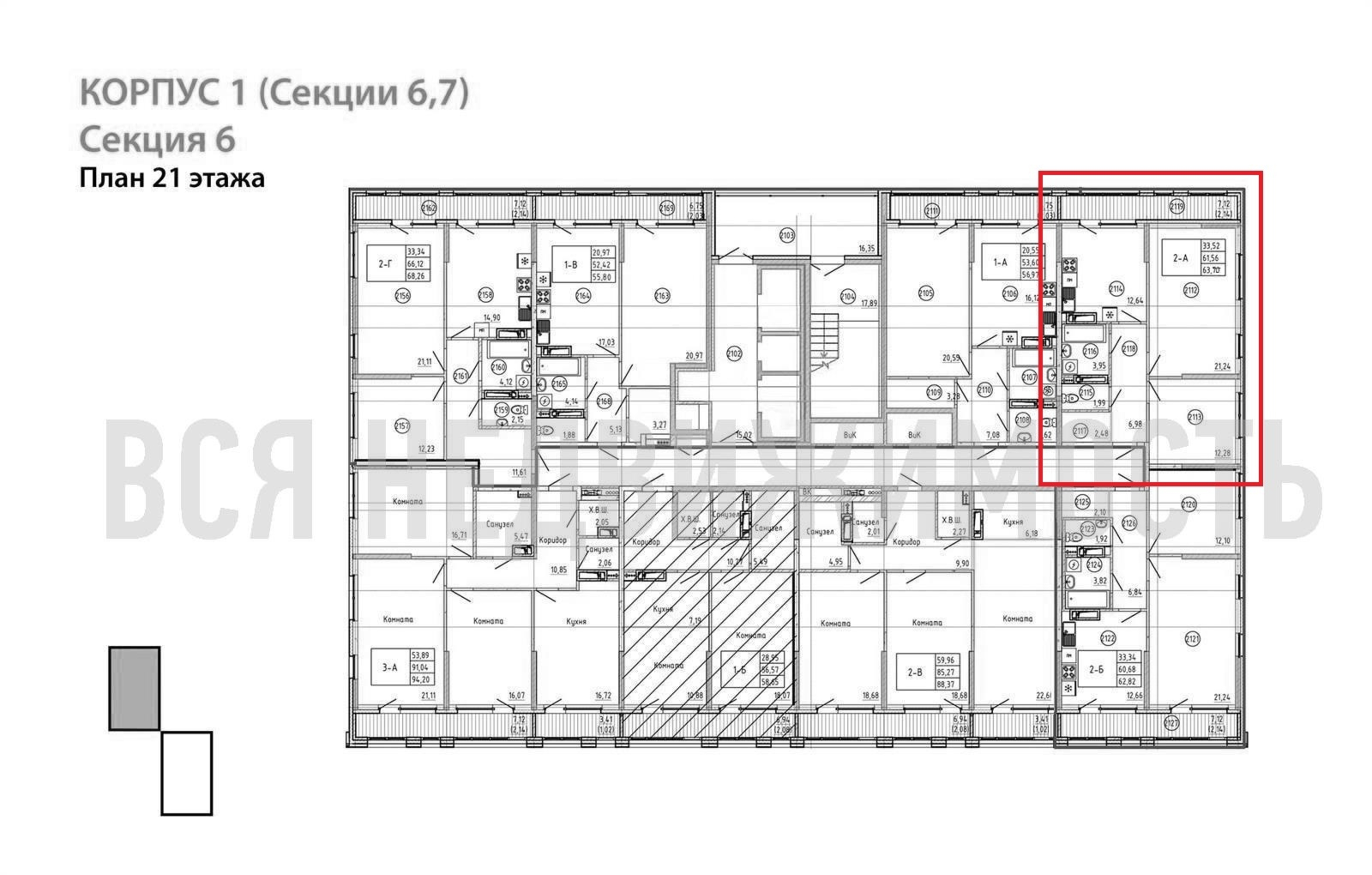 2-комнатная квартира, 63.69 м² 21/23 этаж ID объекта 100069558