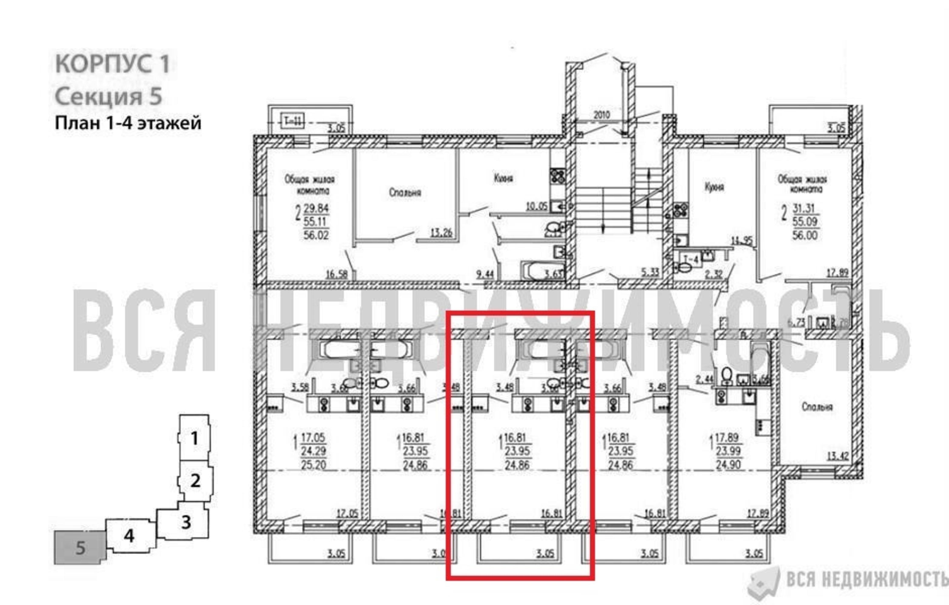 Квартиры-студии, 25.30 м² 1/4 этаж ID объекта 100069608