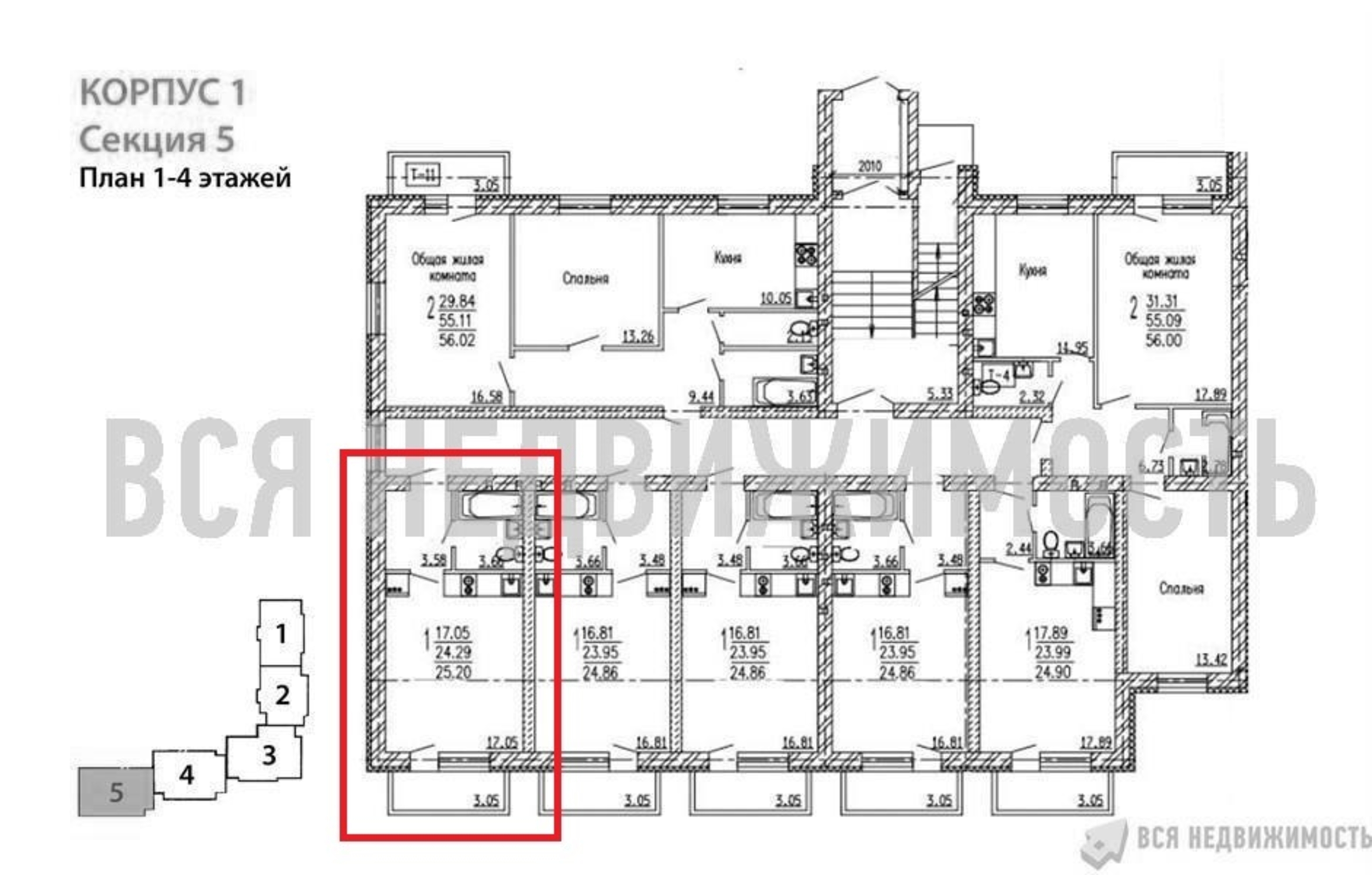 Квартиры-студии, 27.70 м² 1/4 этаж ID объекта 100069616