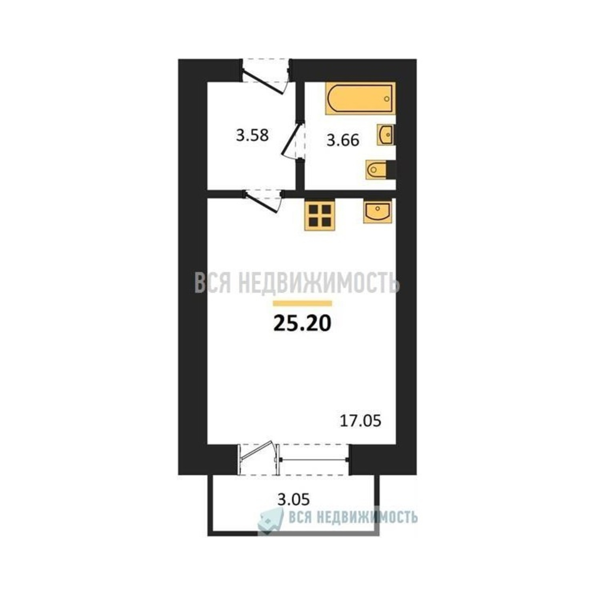 Квартиры-студии, 25.80 м² 3/4 этаж ID объекта 100069618