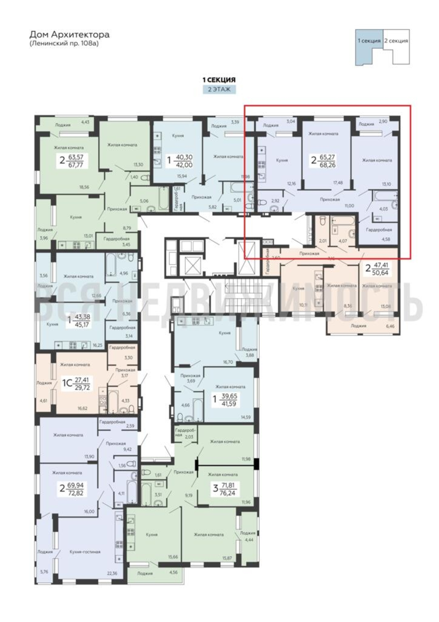 2-комнатная квартира, 68.26 м² 2/12 этаж ID объекта 100070135