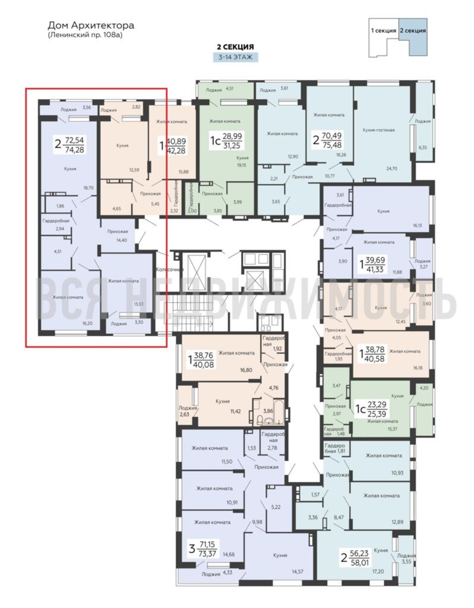 2-комнатная квартира, 74.28 м² 11/14 этаж ID объекта 100070317