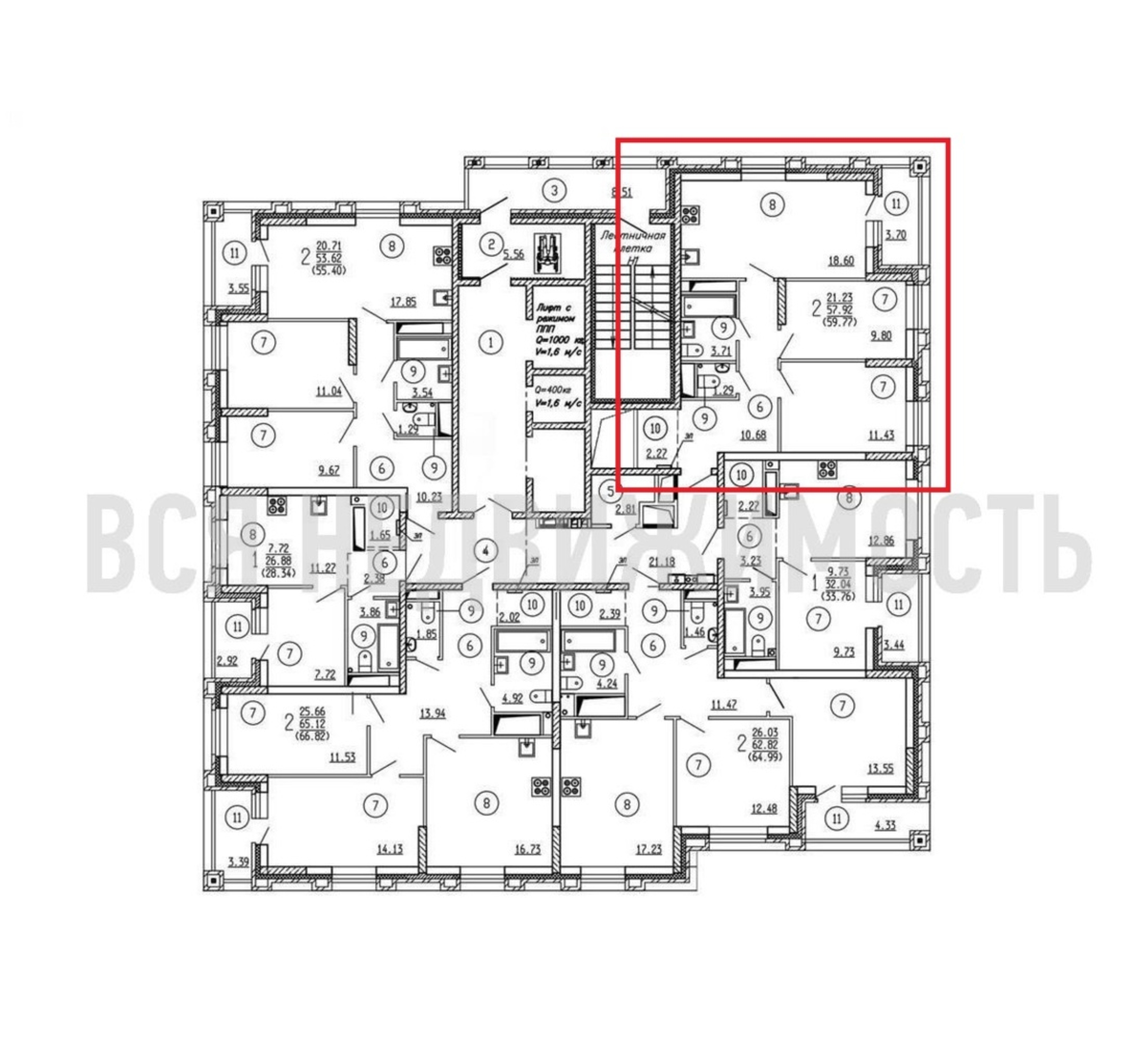 2-комнатная квартира, 59.77 м² 7/25 этаж ID объекта 100070356