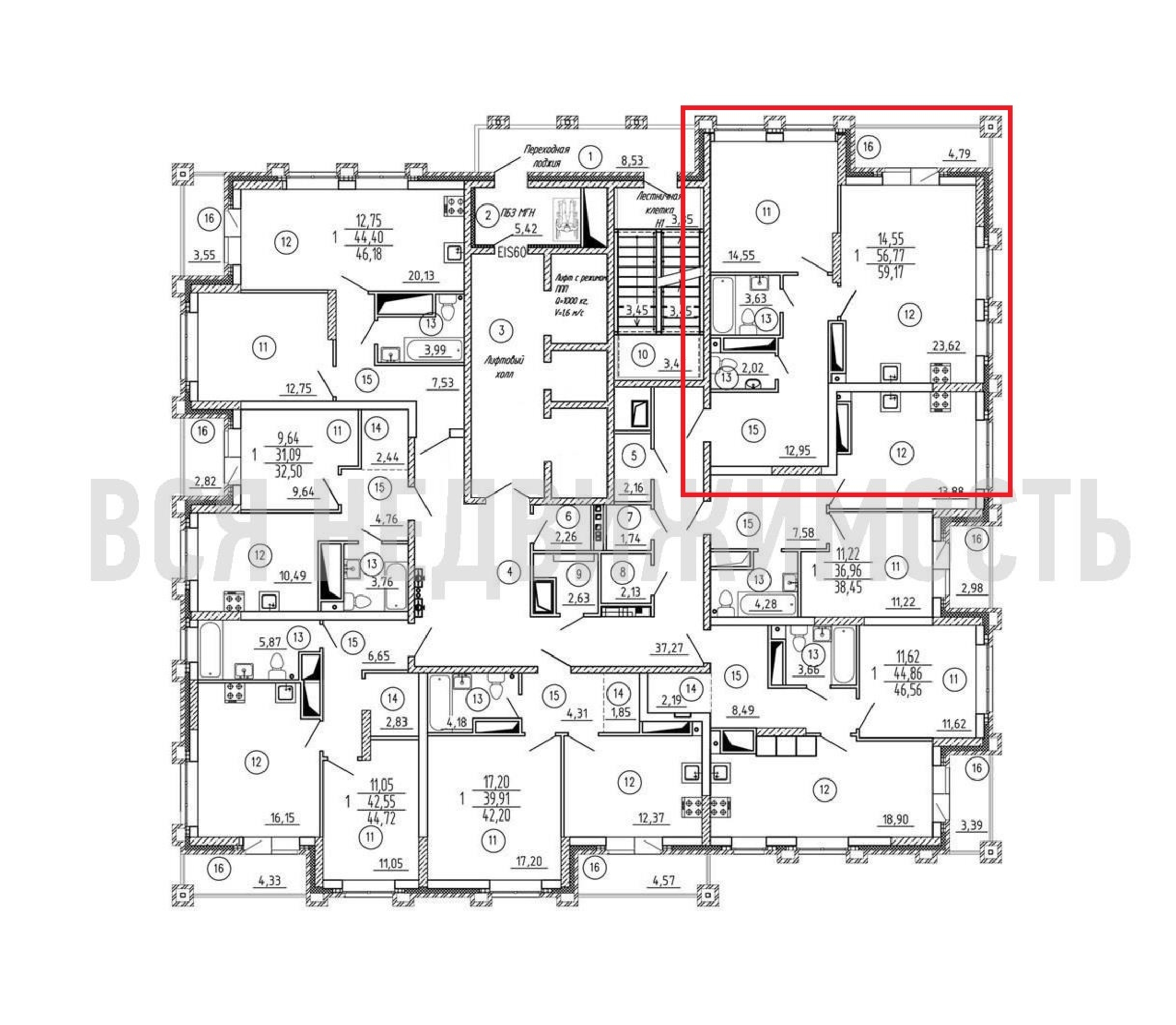 1-комнатная квартира, 59.17 м² 19/25 этаж ID объекта 100070481