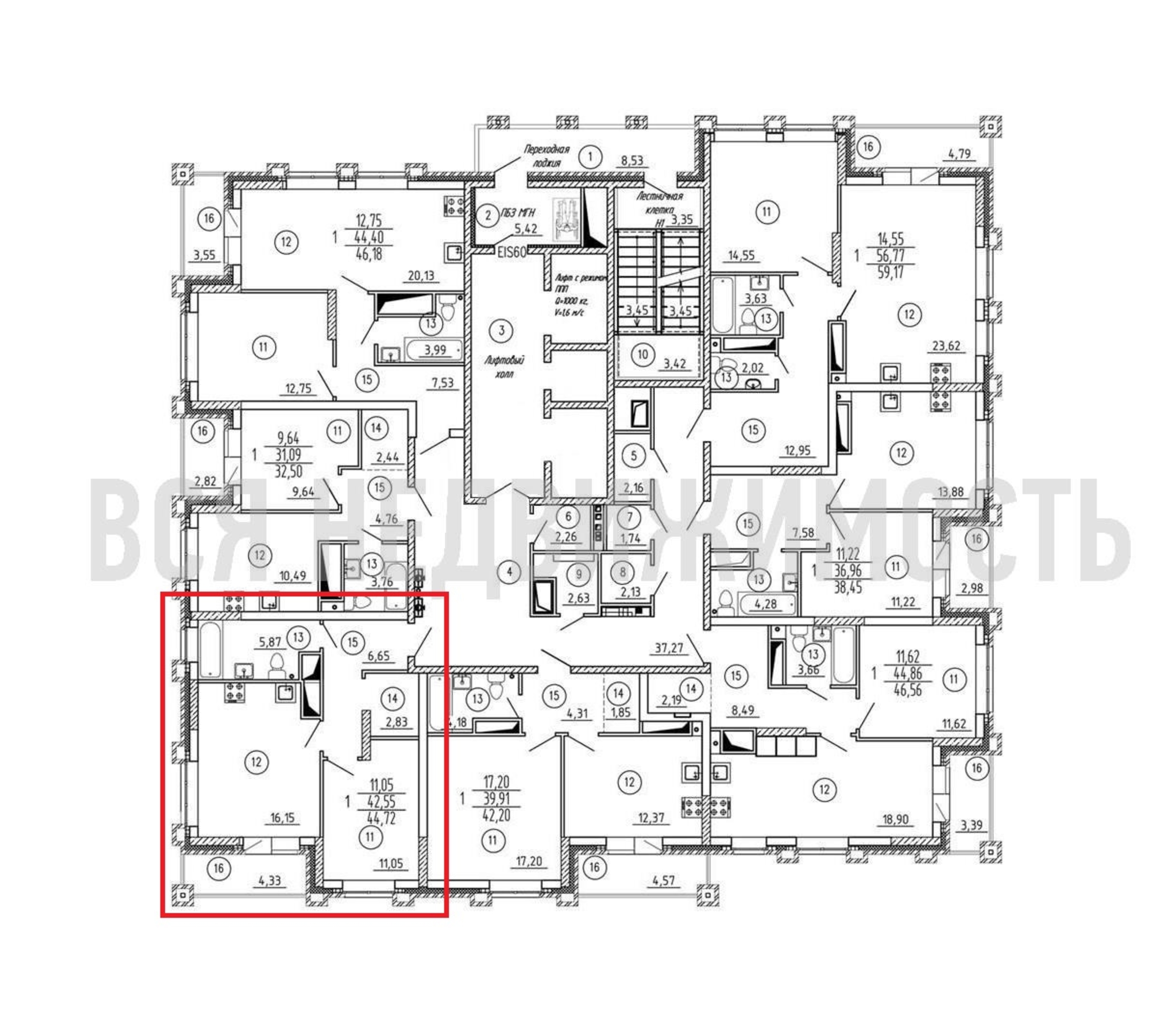 1-комнатная квартира, 44.72 м² 19/25 этаж ID объекта 100070485