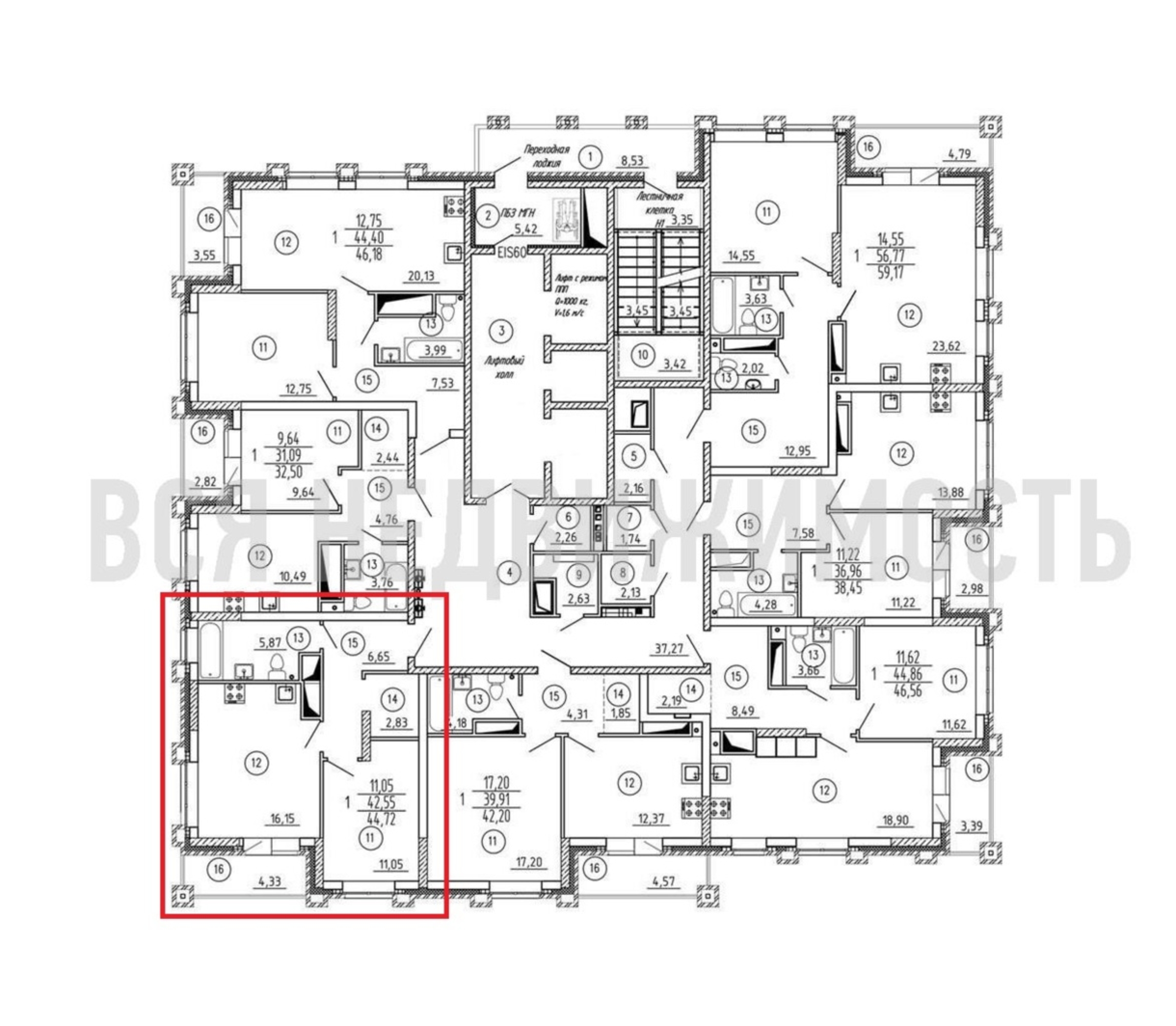 1-комнатная квартира, 44.72 м² 23/25 этаж ID объекта 100070492