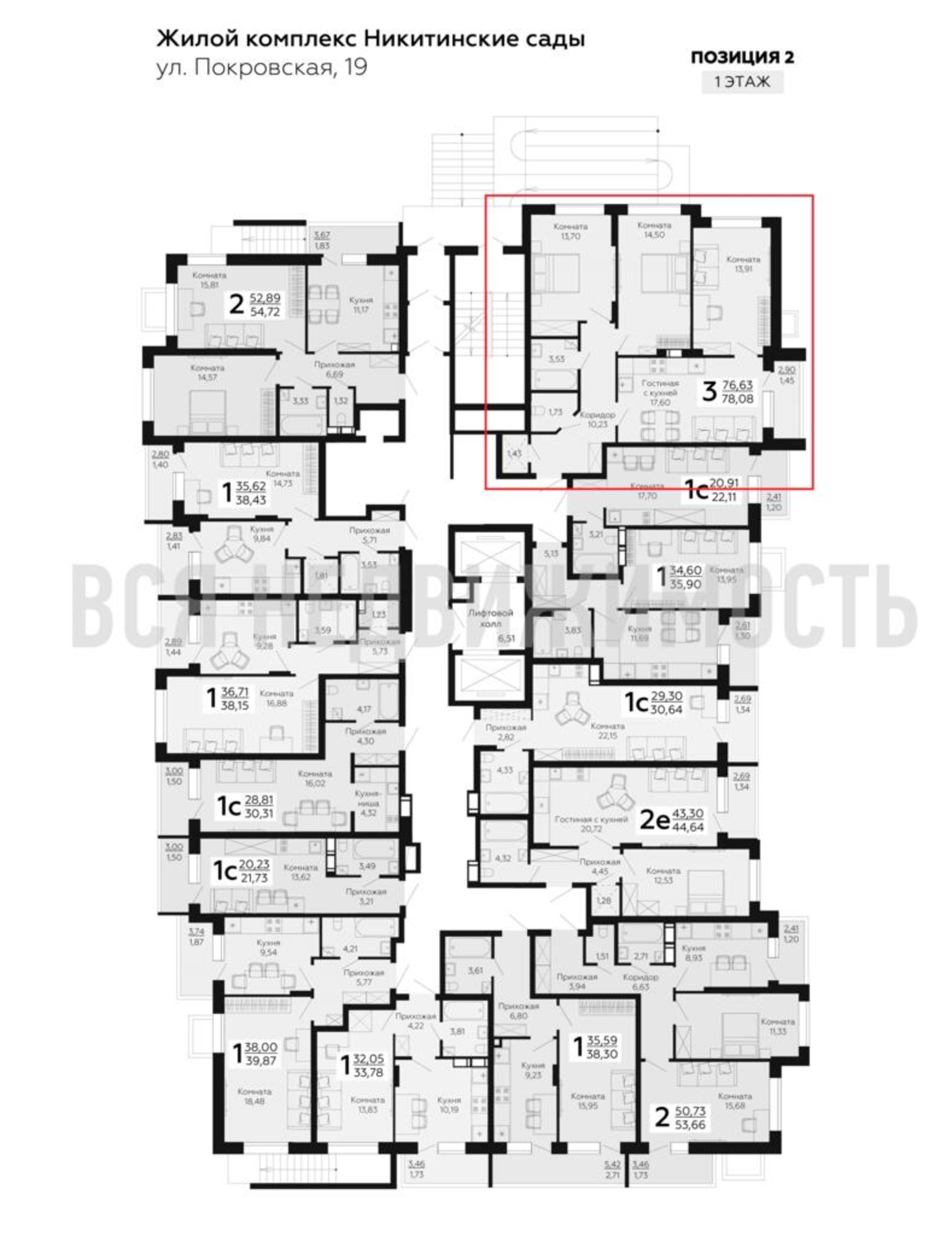 3-комнатная квартира, 78.08 м² 1/19 этаж ID объекта 100070644