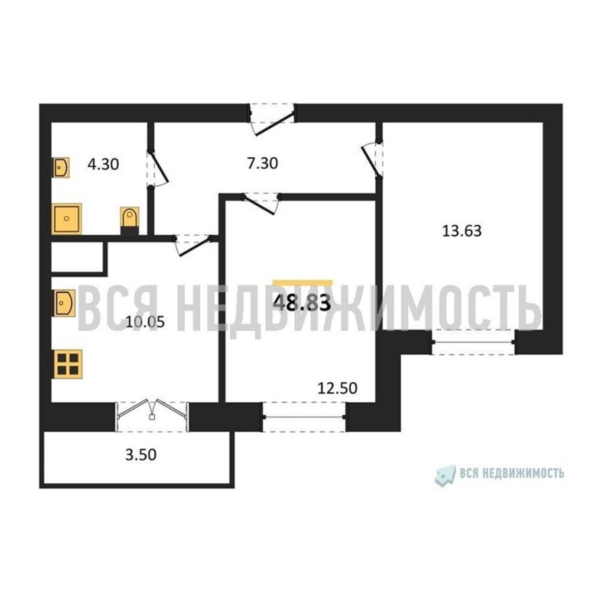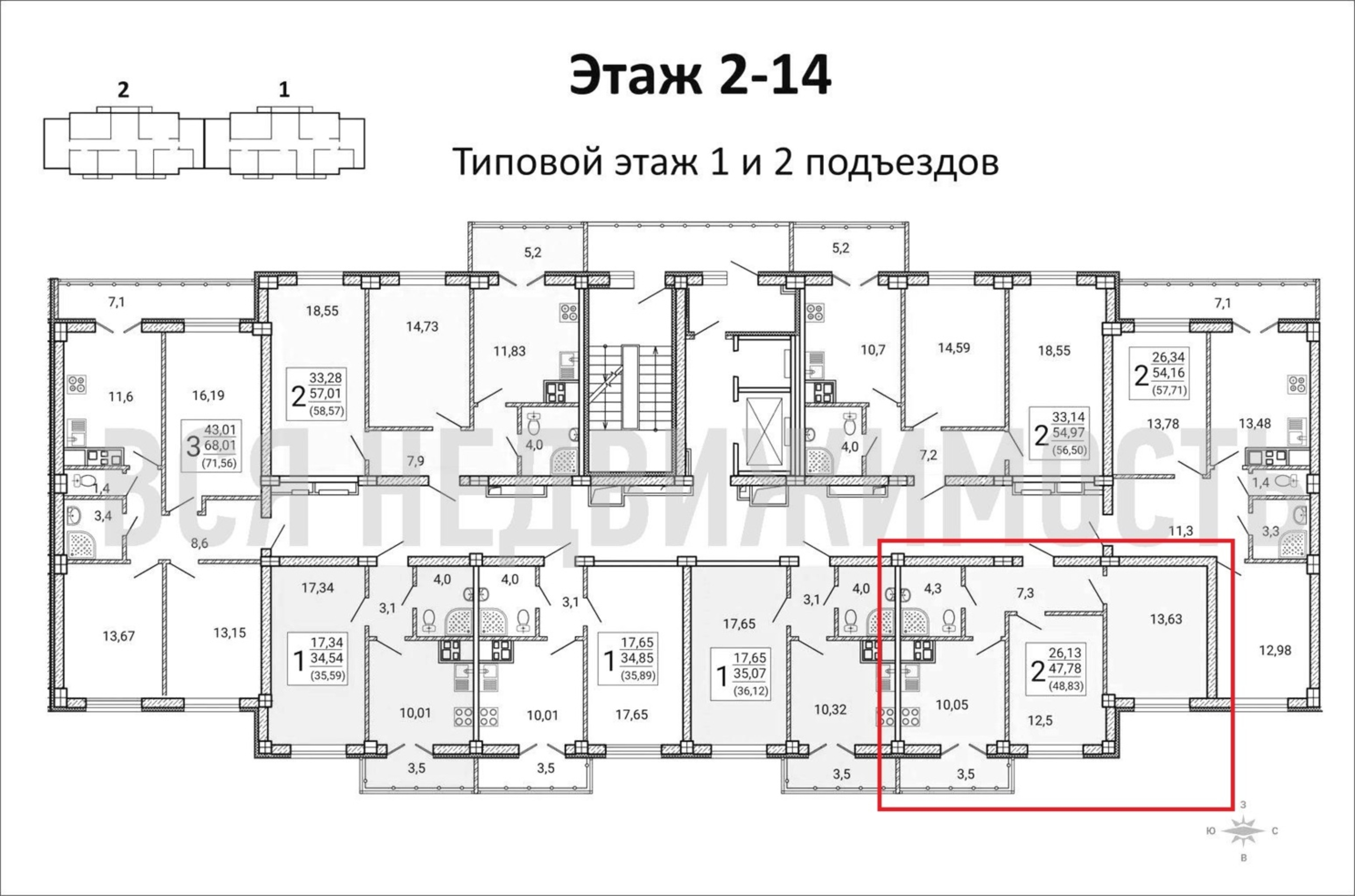 2-комнатная квартира, 48.83 м² 12/15 этаж ID объекта 100070861