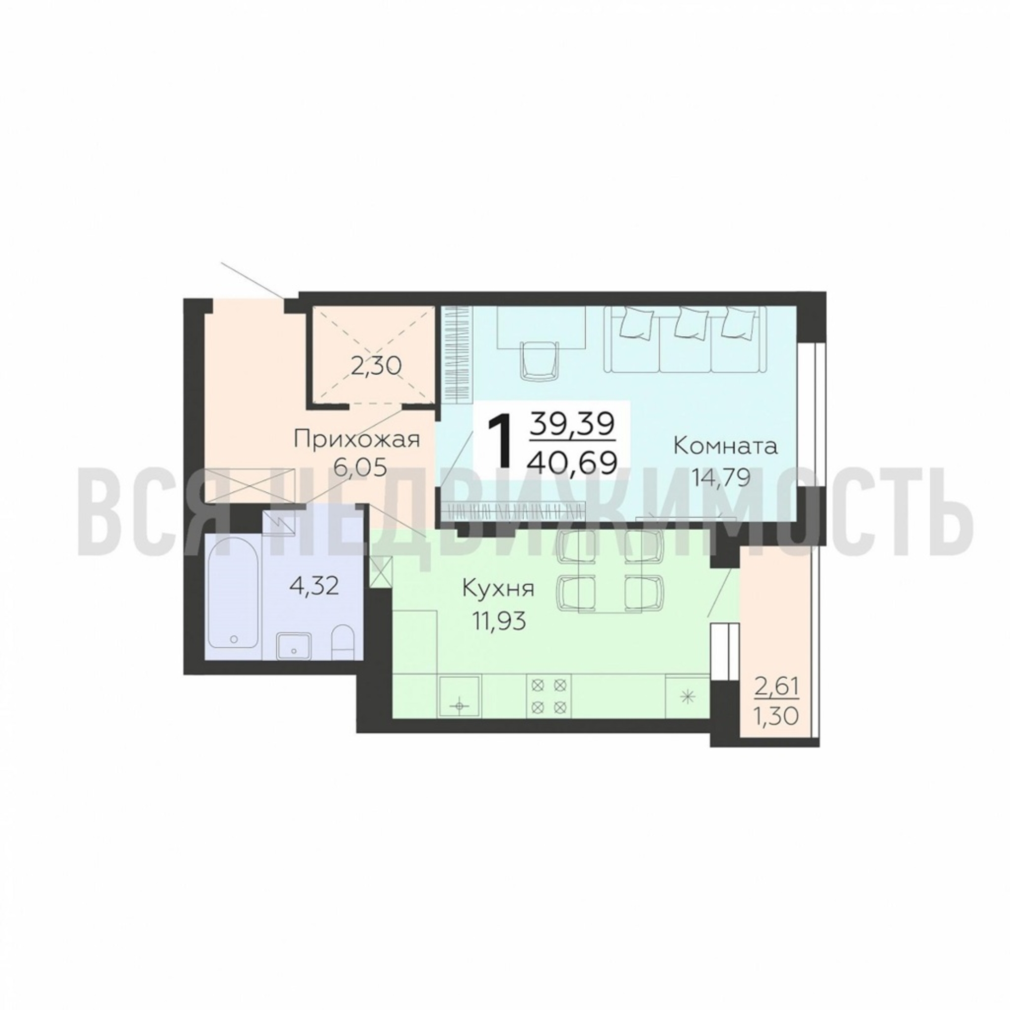 1-комнатная квартира, 40.69 м² 8/19 этаж ID объекта 100071206