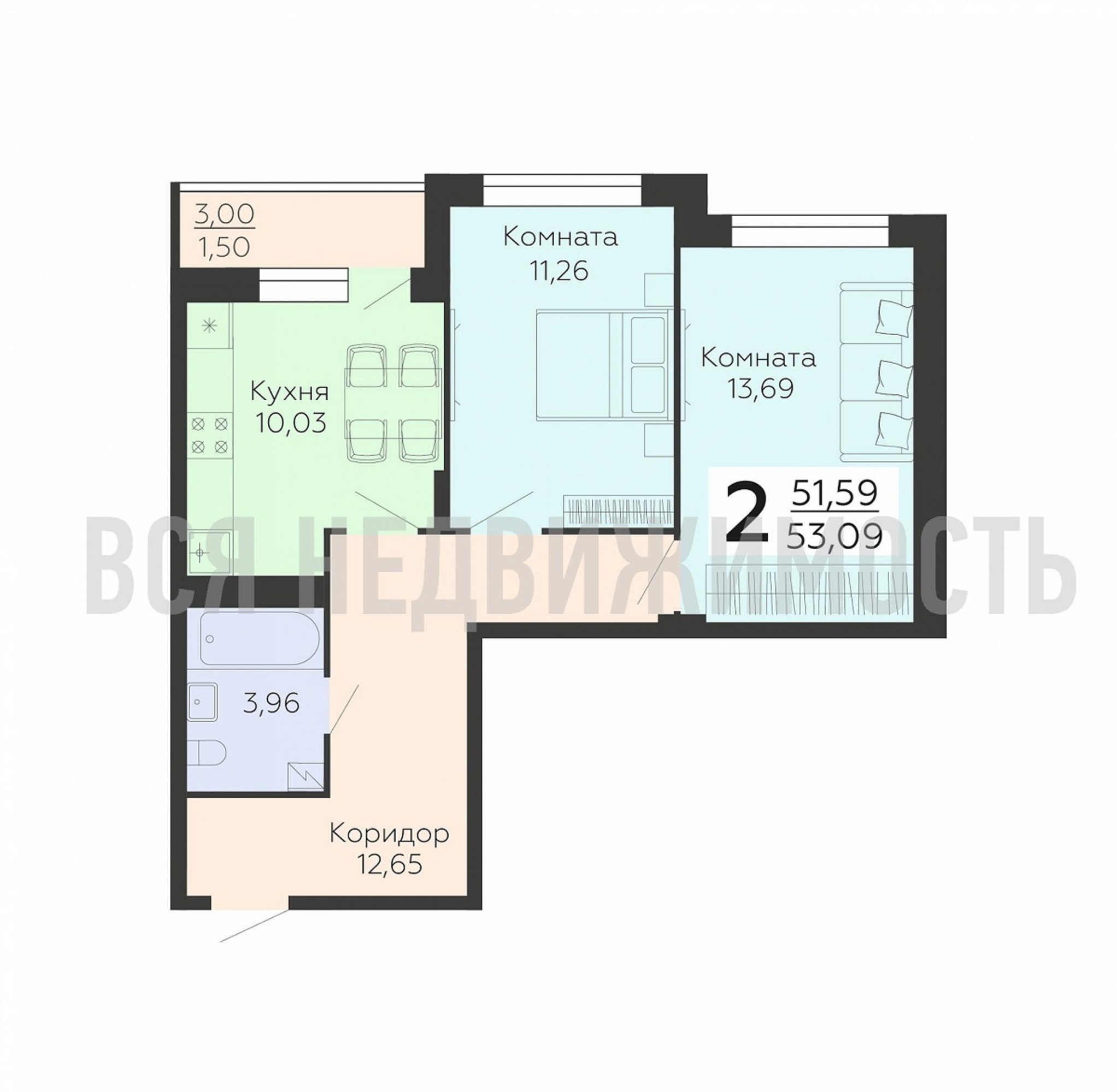 2-комнатная квартира, 53.09 м² 17/19 этаж ID объекта 100071294
