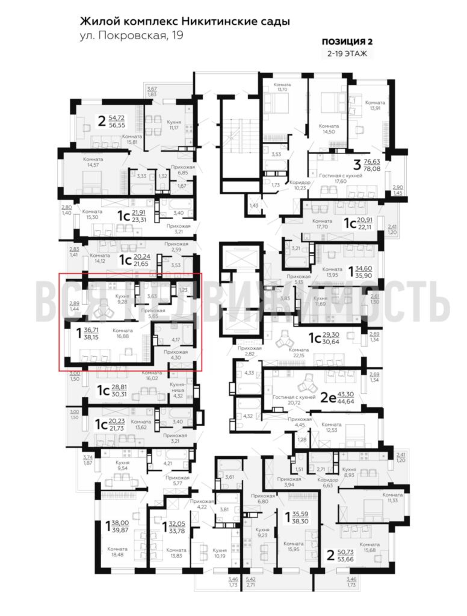 1-комнатная квартира, 38.15 м² 11/19 этаж ID объекта 100071395