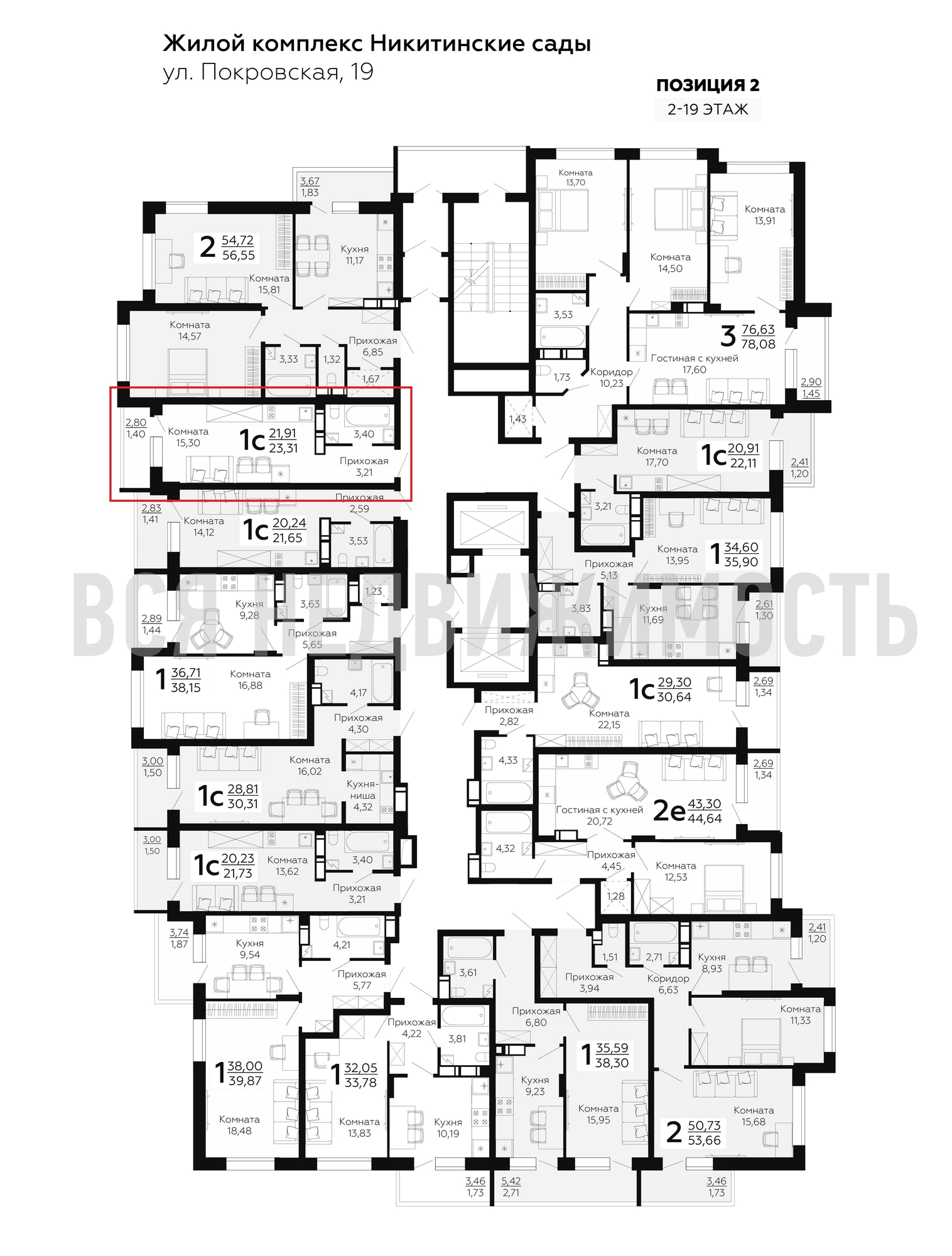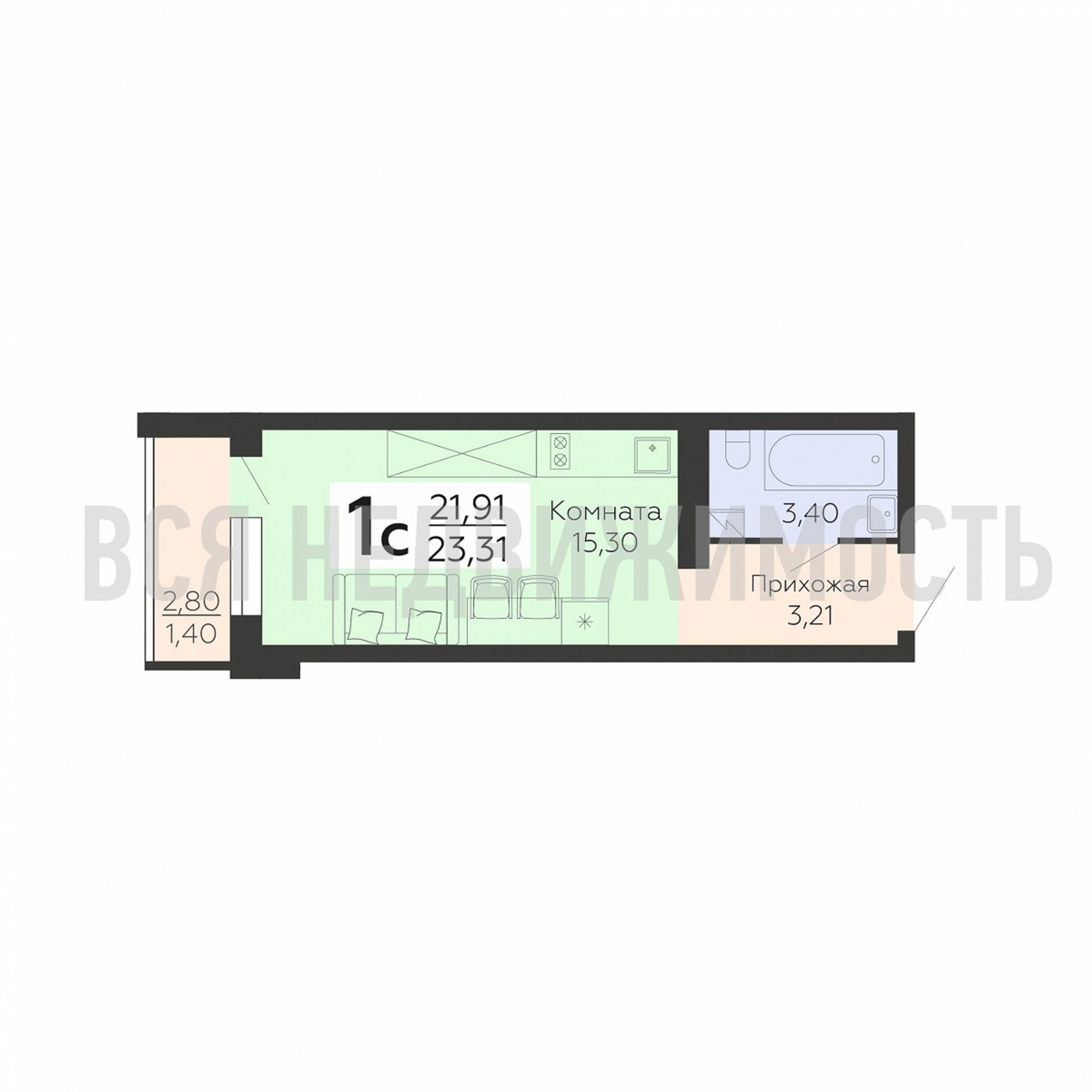 Квартиры-студии, 23.31 м² 18/19 этаж ID объекта 100071457
