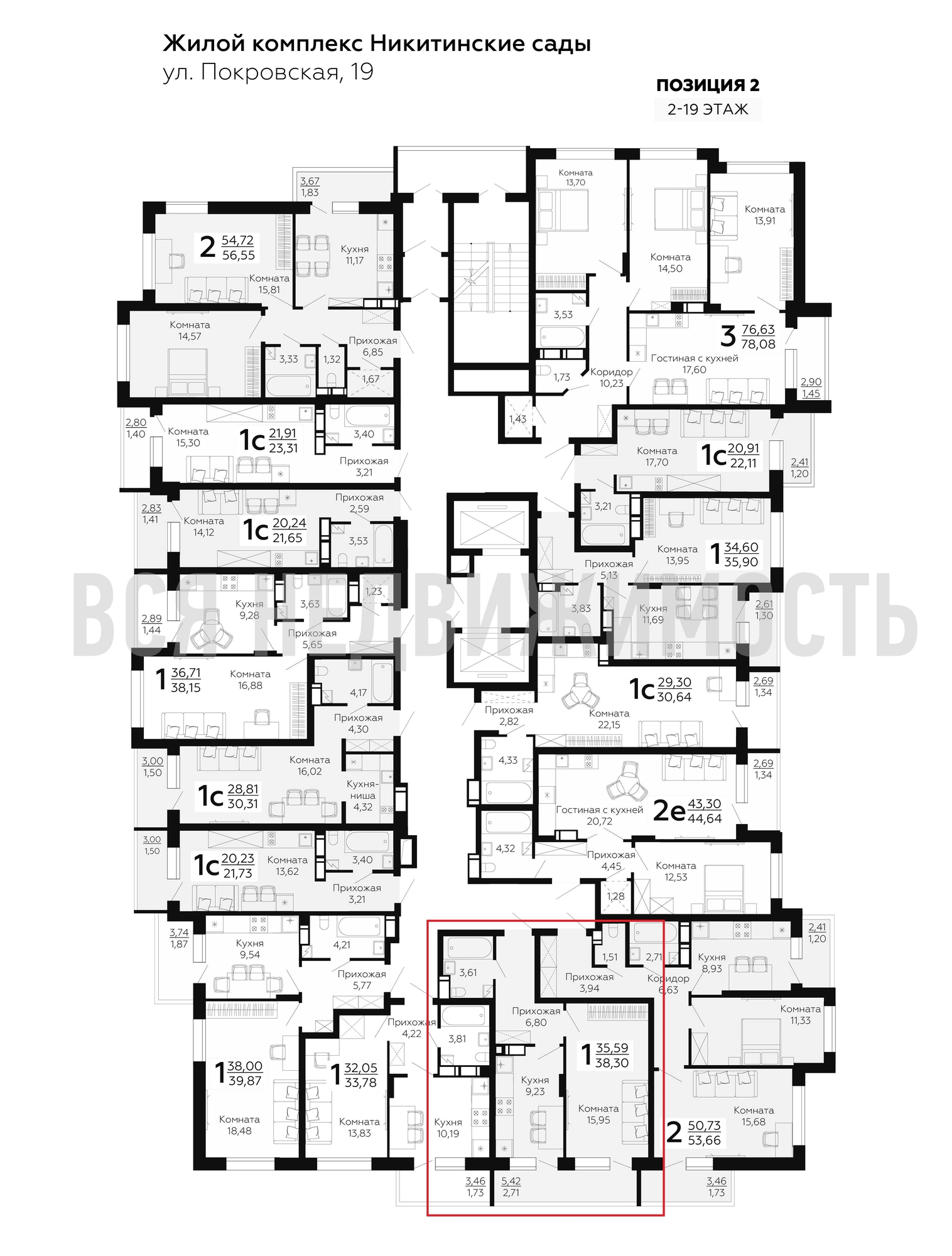 1-комнатная квартира, 38.30 м² 19/19 этаж ID объекта 100071465