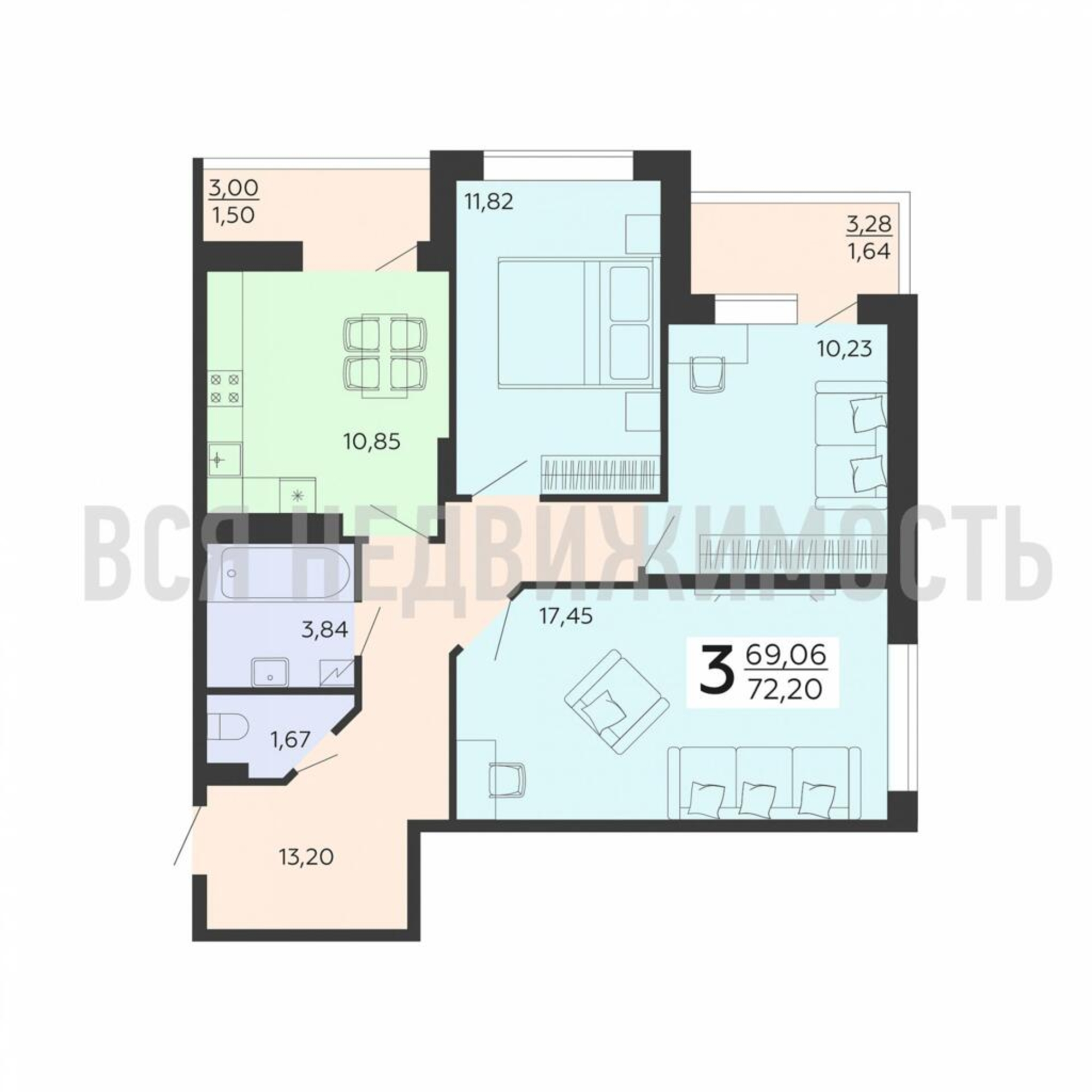 Общая площадь69.06 м²