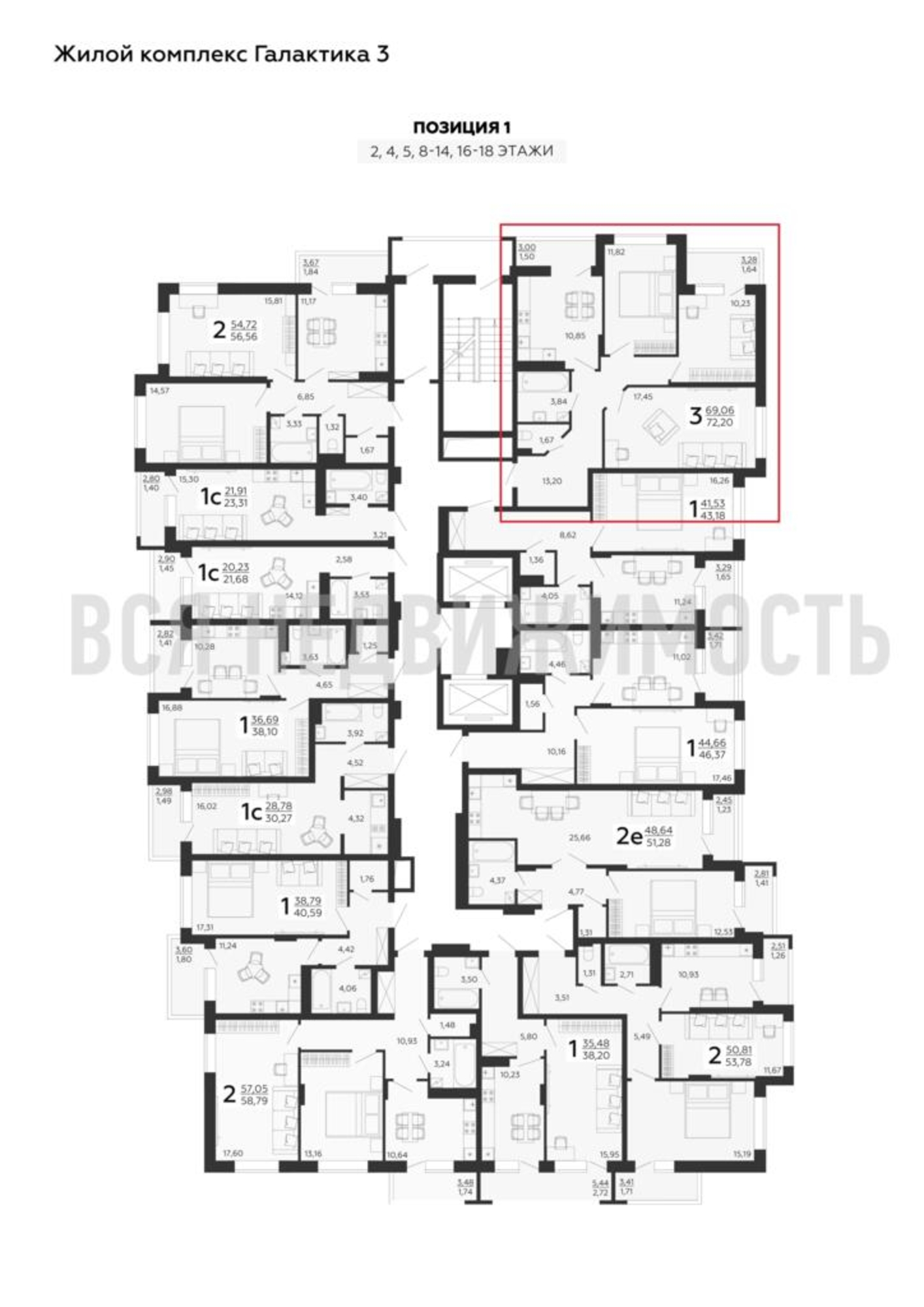 3-комнатная квартира, 72.20 м² 18/18 этаж ID объекта 100072910