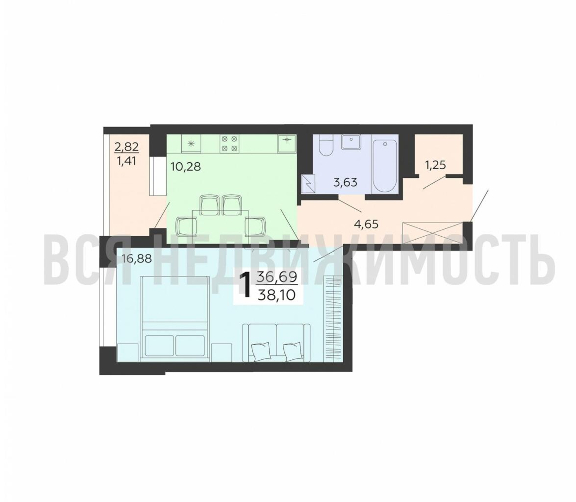 1-комнатная квартира, 38.10 м² 18/18 этаж ID объекта 100072919